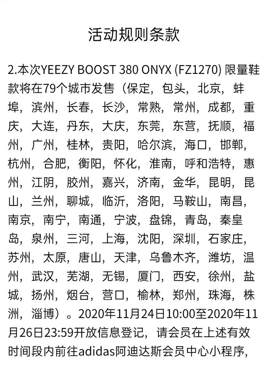 抽签规则与前段时间 adidas 发售限量鞋款的方式相同,采用七星彩形式,将以 11 月 24 日的七星彩开奖号码为准。
