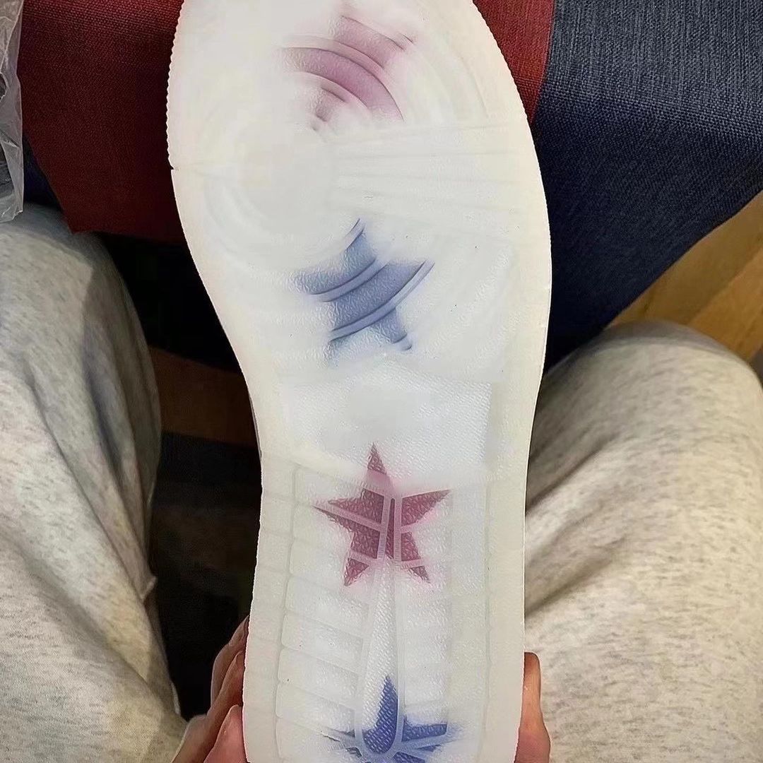 从目前曝光的谍照看,鞋身整体配色还原经典芝加哥的构色方案,最酷的是后跟点缀乔丹亲签字样,外底红、蓝五星映衬,并在鞋垫上刺绣 Trophy Room 专属印花,处处都透着高规格。
