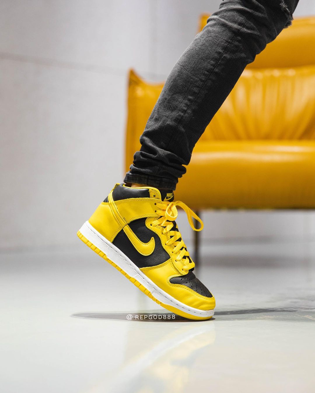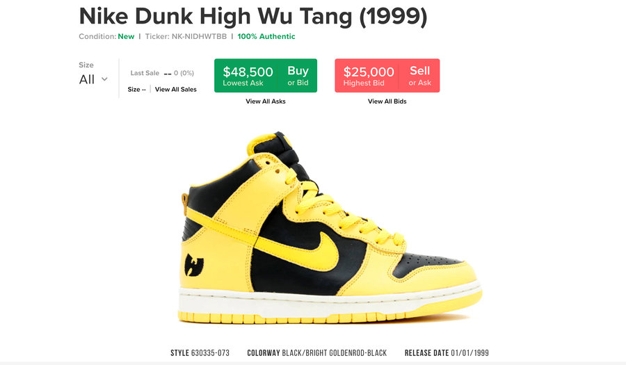 本来黑黄配色就有不错人气,再加上外观和 1999 年那双超级天价神鞋 Dunk Hi “Wu-Tang” 实在太像了,除了没有后跟刺绣 Logo 和一些细节区别,其他几乎都一样,高颜值还是天价鞋平替款谁能顶住?