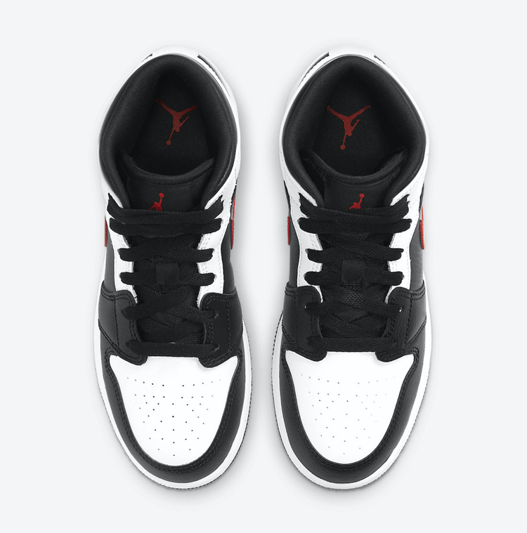 整双鞋以黑白双色拼接样式呈现,同时辅以红色 Swoosh 点缀,配色方面极其讨喜。
