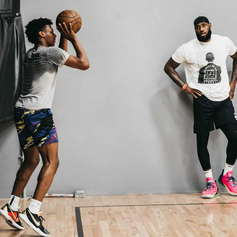 今日在个人社交媒体上晒出与 16 岁儿子布朗尼的训练合照,特别还把两人持球、扣篮的姿势,以相同角度呈现,一定心里期盼着早日在赛场解锁「上阵父子兵」的成就。