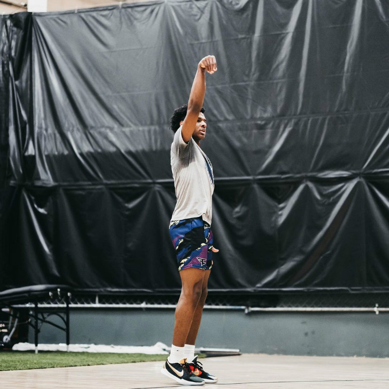 除此之外,脚下的「洛杉矶之夜」配色 LeBron 18 也相当夺目。