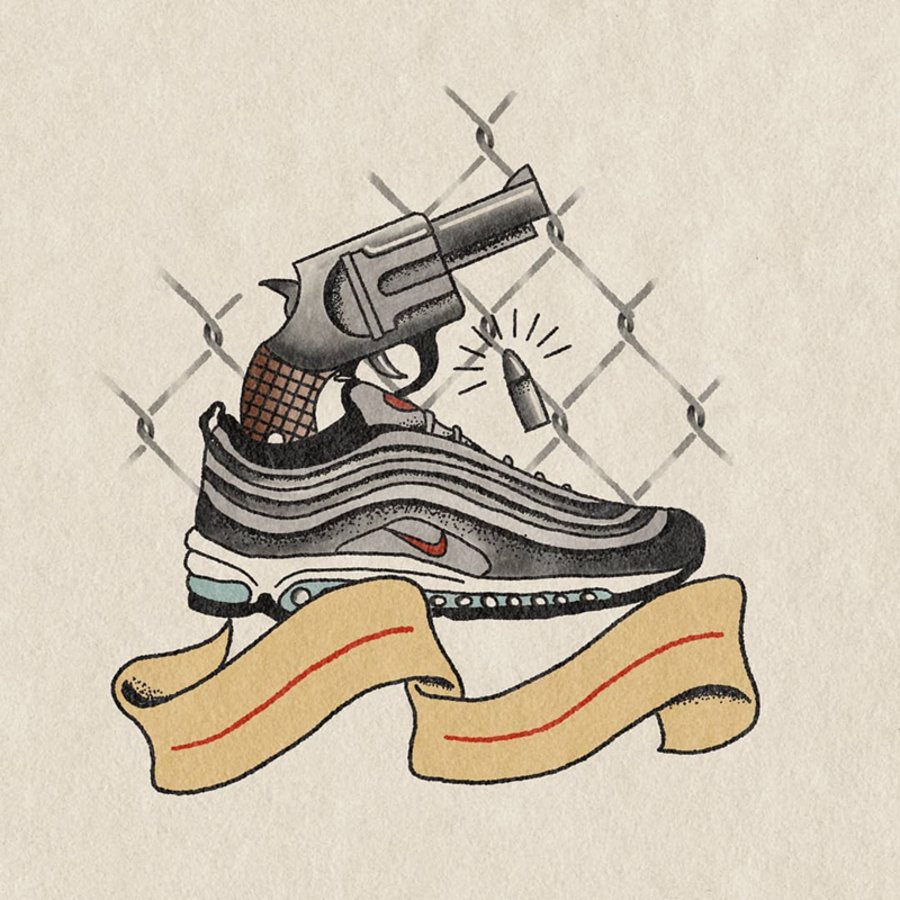 将左轮手枪与银色子弹配合 Air Max 97 OG 共同呈现。
