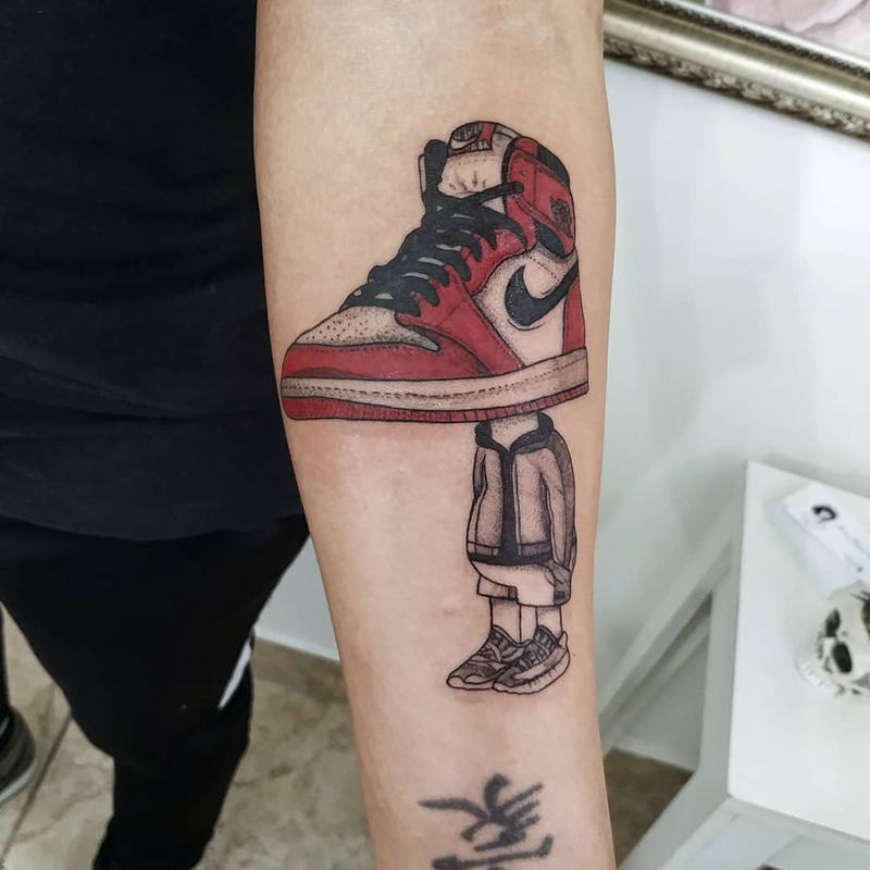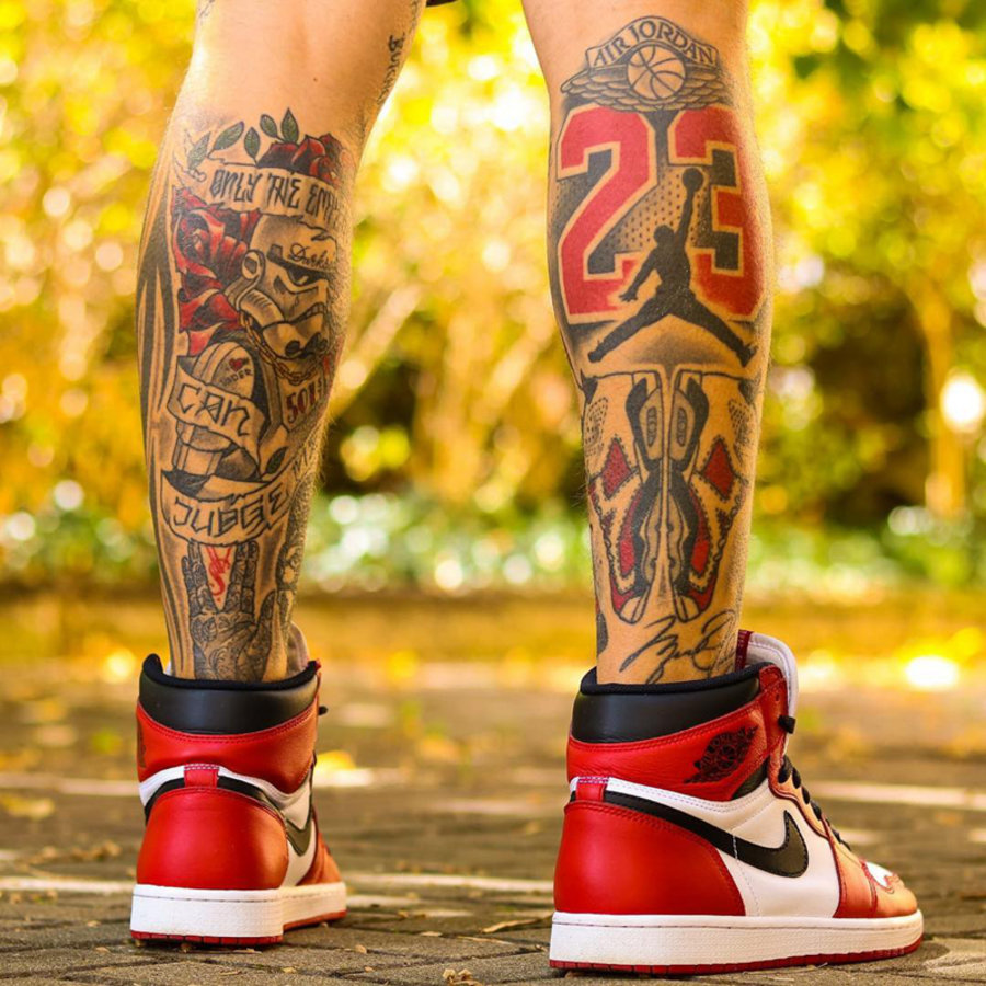 通过文身这种拥有丰富艺术张力的呈现方式,埋藏的创造性与信息量,更会让每一个球鞋玩家对你脱帽致敬。