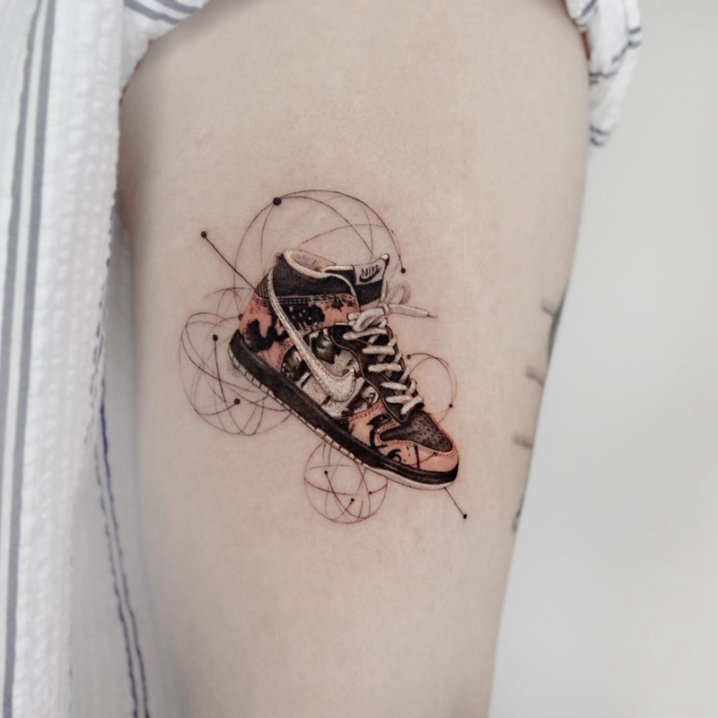 当下,球鞋刺青异军突起成为大热题材,通过针与墨在皮肤间的跳动,演绎着对球鞋最深沉的向往。