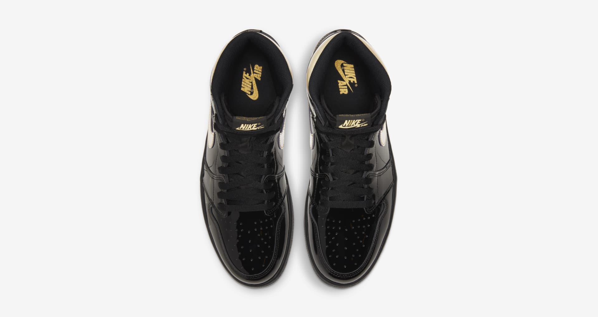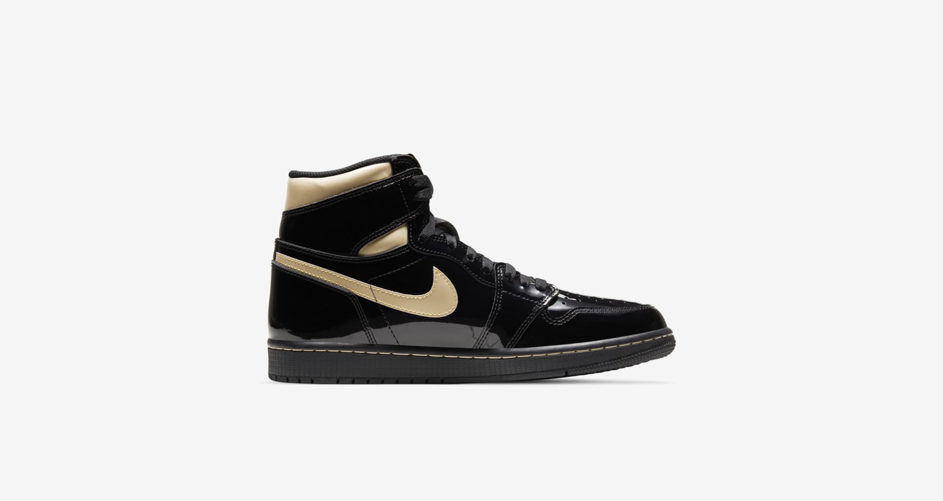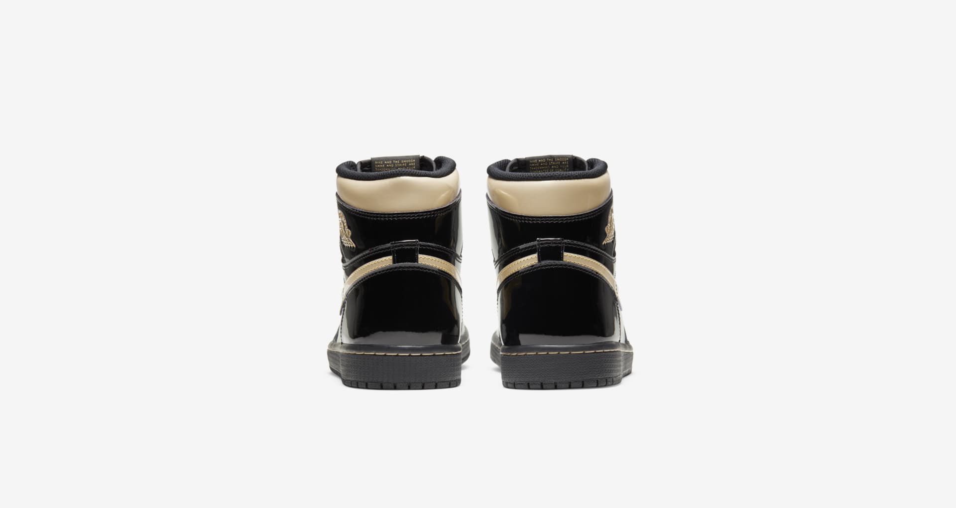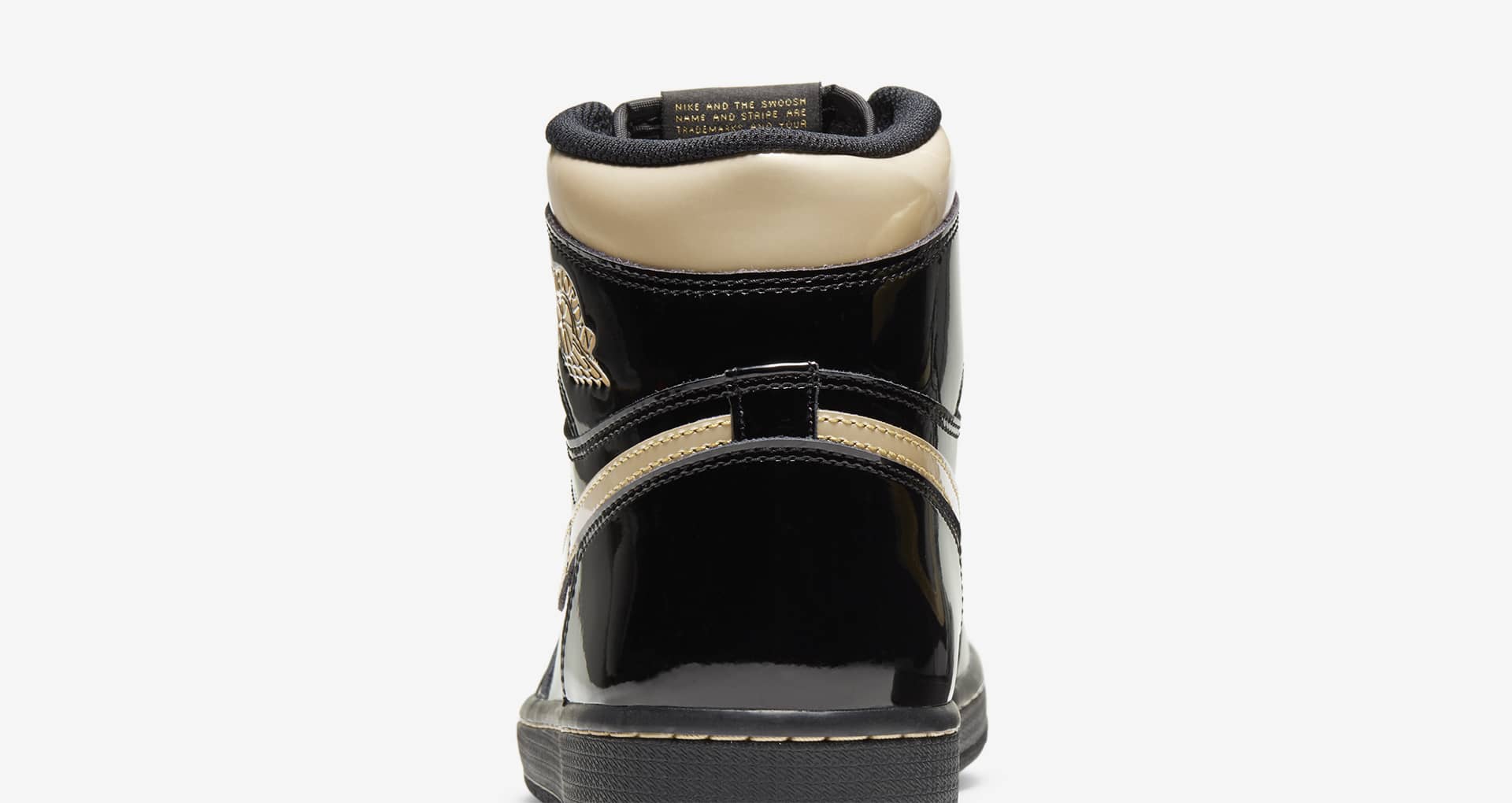 采用「黑金」构色常用的漆皮材质打造,周身亮黑色,点缀金色 Swoosh Logo 和飞翼,让人有一种看着就不便宜的感觉,颜值气质非常上档次。