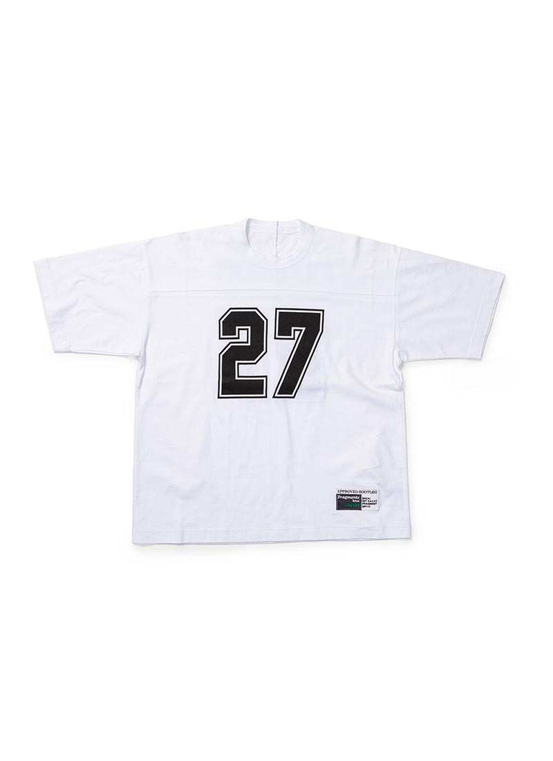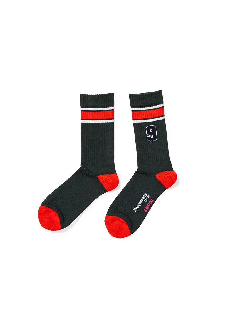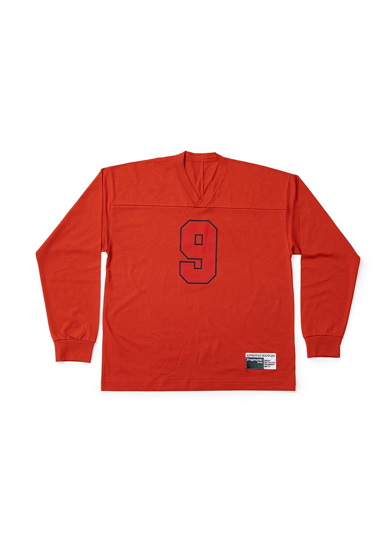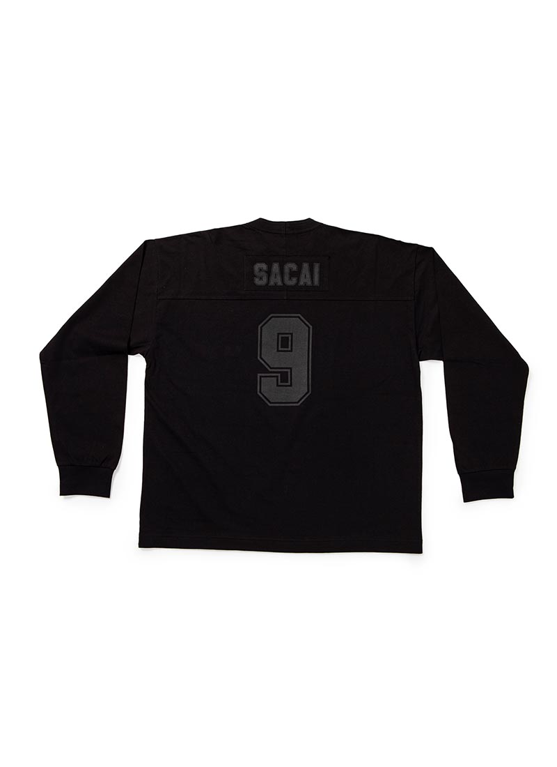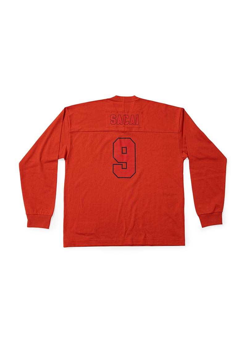 双方以美式橄榄球衣为设计灵感,特别将 sacai 主理人阿部千登势 (Chitose Abe)和藤原浩 (Hiroshi Fujiwara) 的生日数字,作为球衣背后号码呈现。