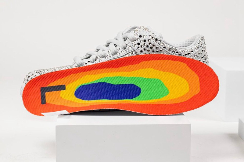 整双鞋在灰白色基础上,鞋身贴满了水钻,带来极为奢华的视觉效果。