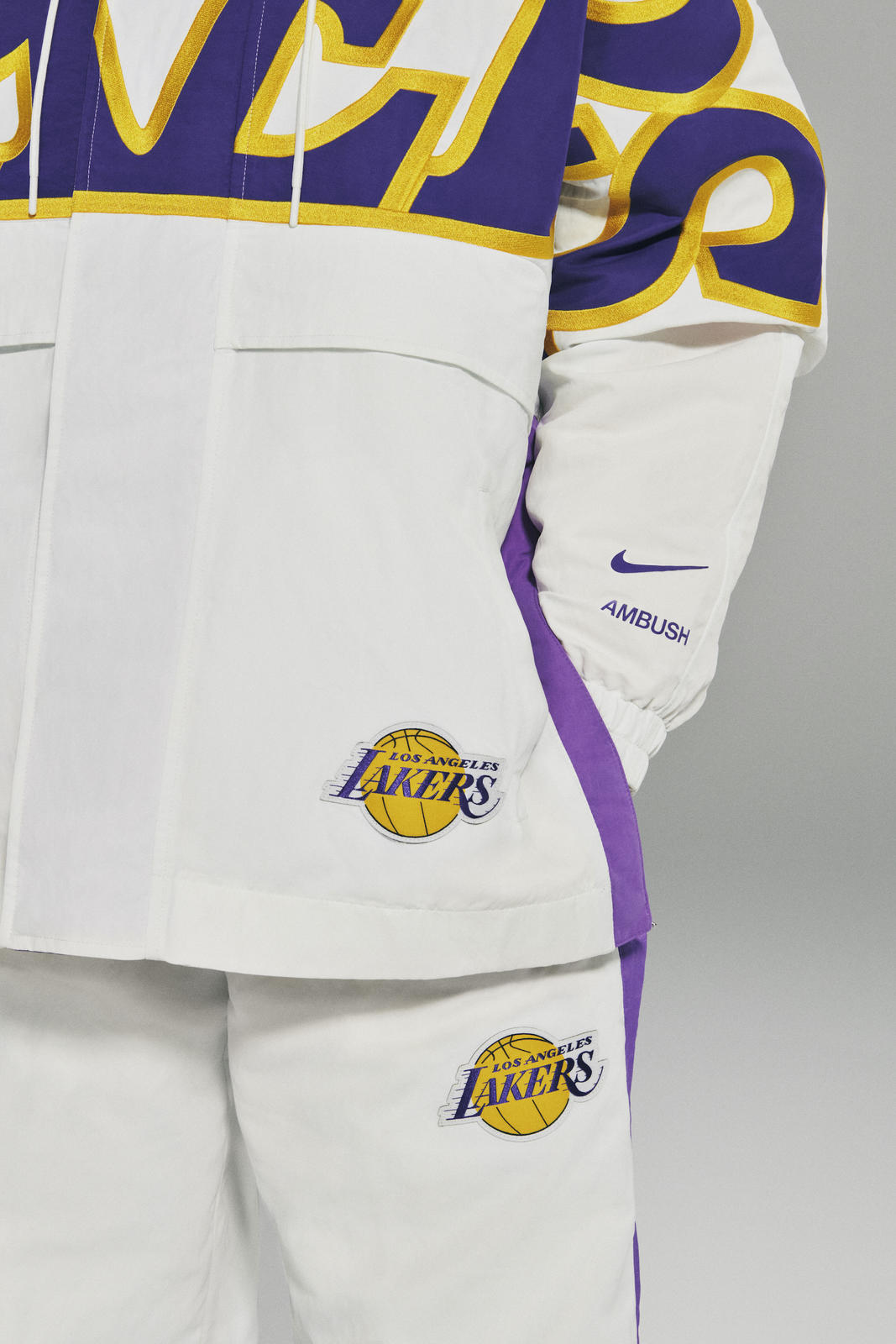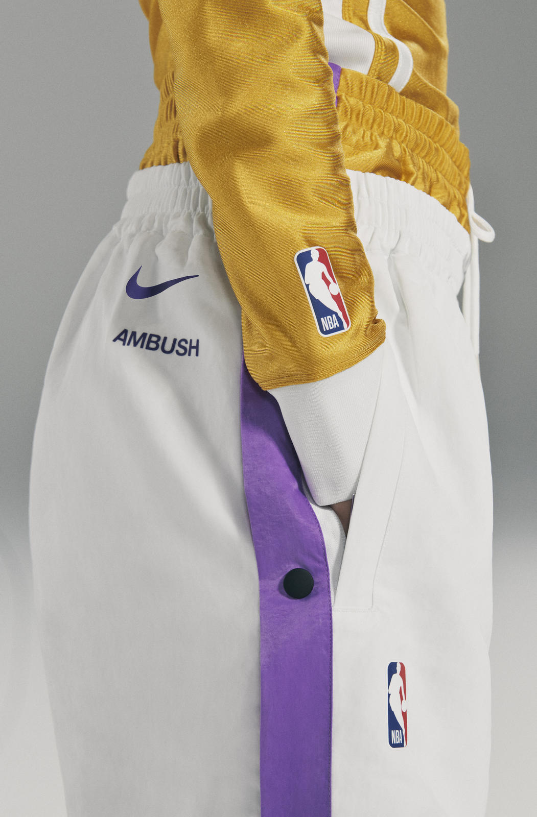 此次设计将湖人队和篮网队的传统篮球装备重新演绎,AMBUSH 代表性元素的加持赋予其时尚潮流属性。