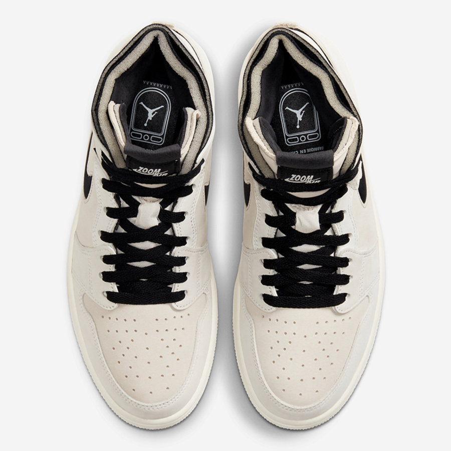 整双鞋在 Air Jordan 1 Zoom CMFT 的鞋型基础上,采用一袭淡淡的卡其色皮革装扮鞋身。