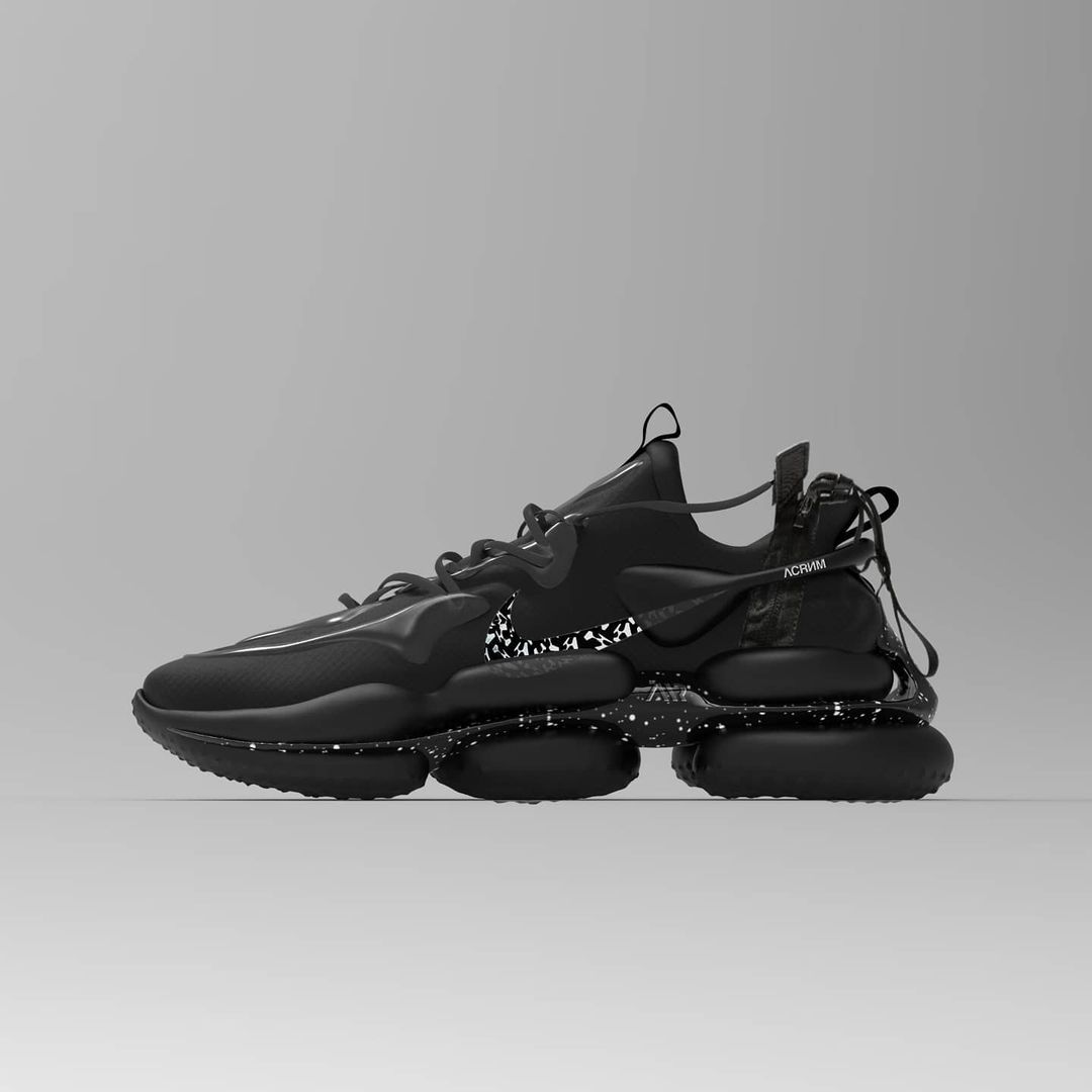 以 VaporMax 为灵感设计出 Nike Air BubbleRun,还有 ACRONYM 的联名配色,黑白泼墨和鞋帮拉链都是 ACRONYM 联名的标志性元素。