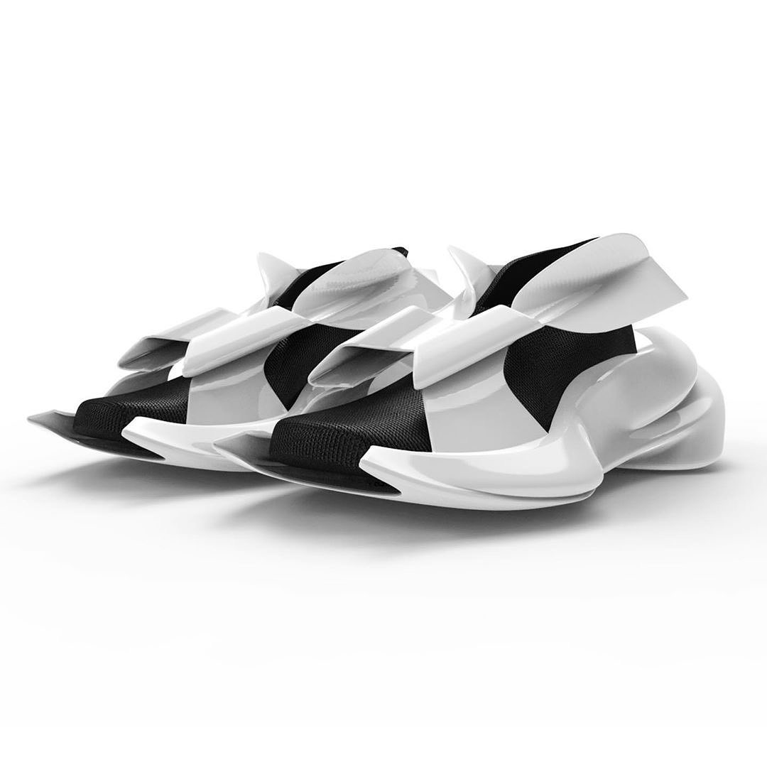 设计灵感来自鹦鹉螺,通过 3D 打印技术仿生,仿生贝壳头还有全魔术贴鞋身,可玩性极高。