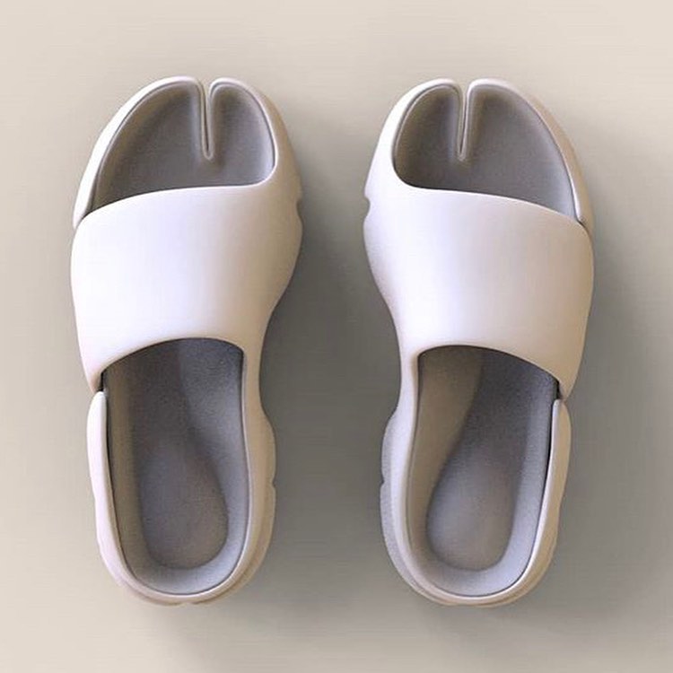 不仅延续了 Yeezy 拖鞋的极简风格,更流畅的线条和鞋头的镂空在视觉上更加高级。