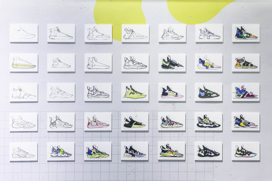 现场也展示了不少设计手稿,包括雏菊、Hello Ketty 等可爱设计,看来 Harden Vol.5 还会有更多精彩配色,值得期待。