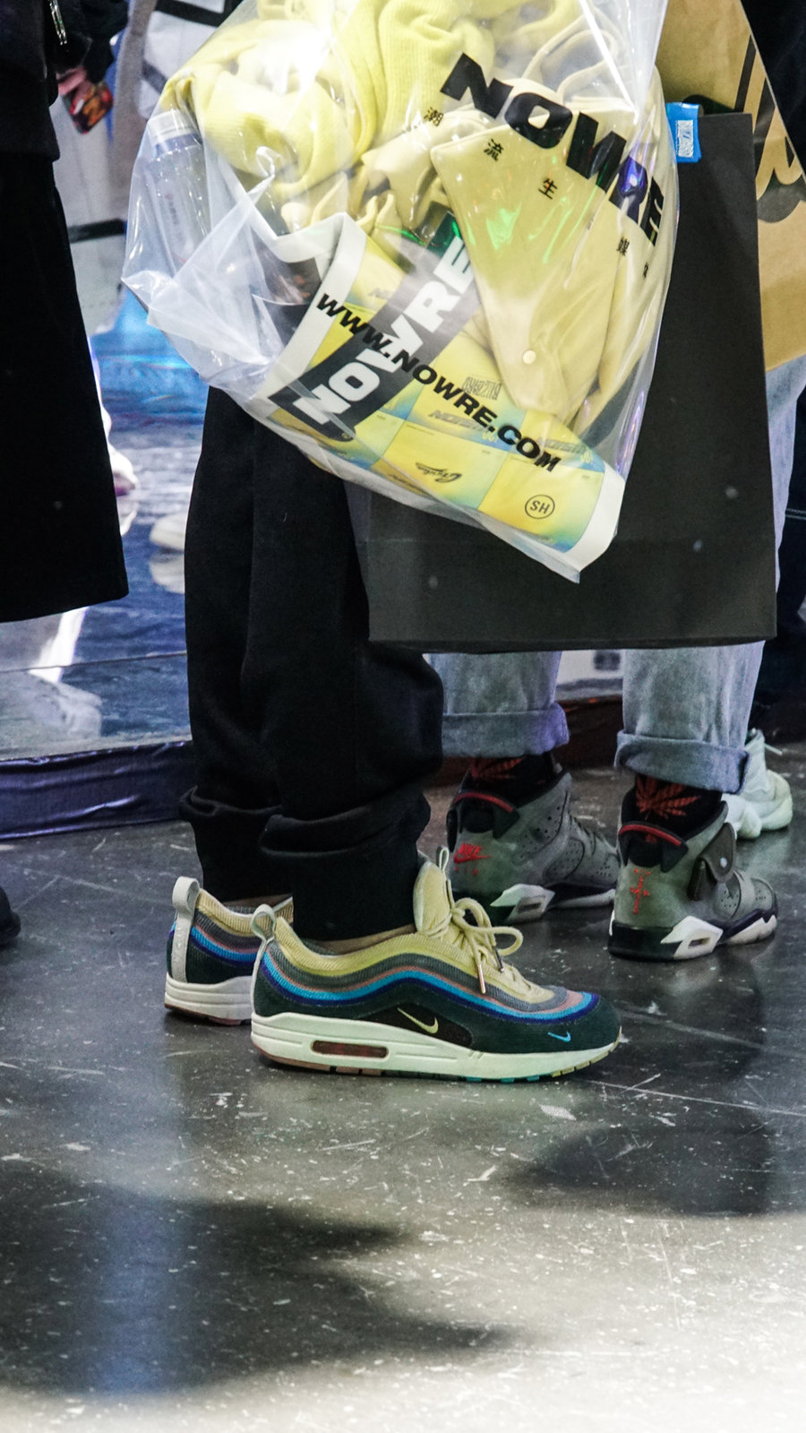说回球鞋,现场玩家都把自己压箱底的宝贝穿出来了,Travis Scott、Sacai 等各路联名目不暇接,甚至还有稀有 PE 等神物。