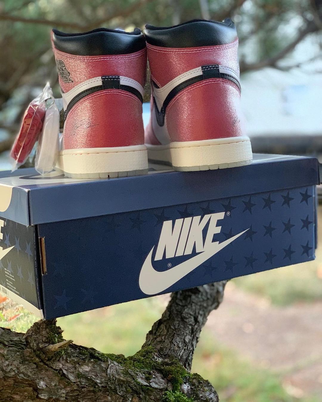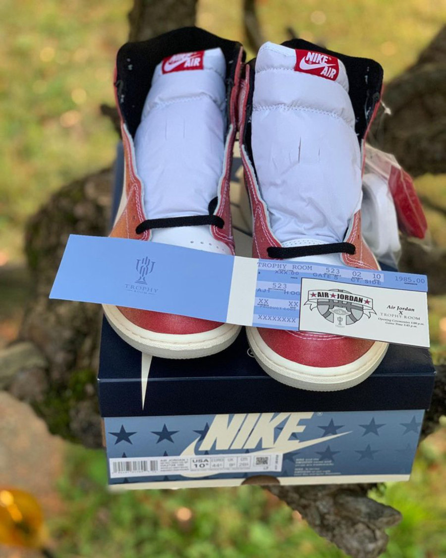 限量 12000 双的芝加哥 Trophy Room x Air Jordan 1 Hi,继此前实物和鞋盒细节曝光后,近日上脚效果首次浮现网络。