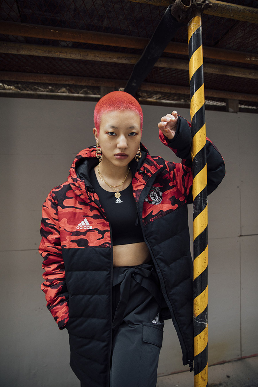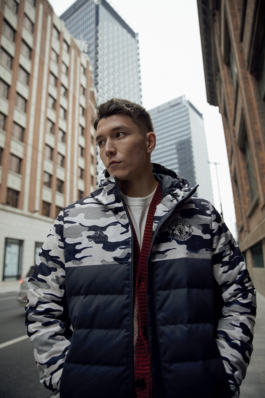 曼联除带来最具辨识度的红魔装扮外,还以客场球衣的黑灰迷彩为设计元素,营造醒目的时尚装扮。