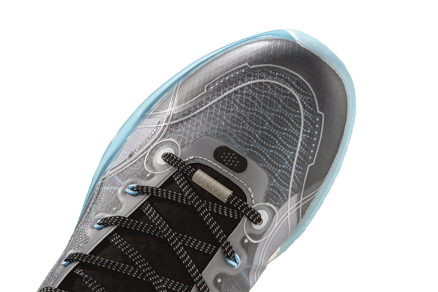 最大的变化在鞋面,内层为 TPU 纱线打造的编织材质,外层则是轻薄的半透明蝉翼。