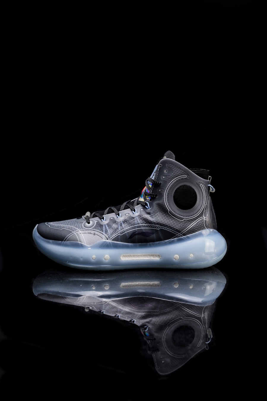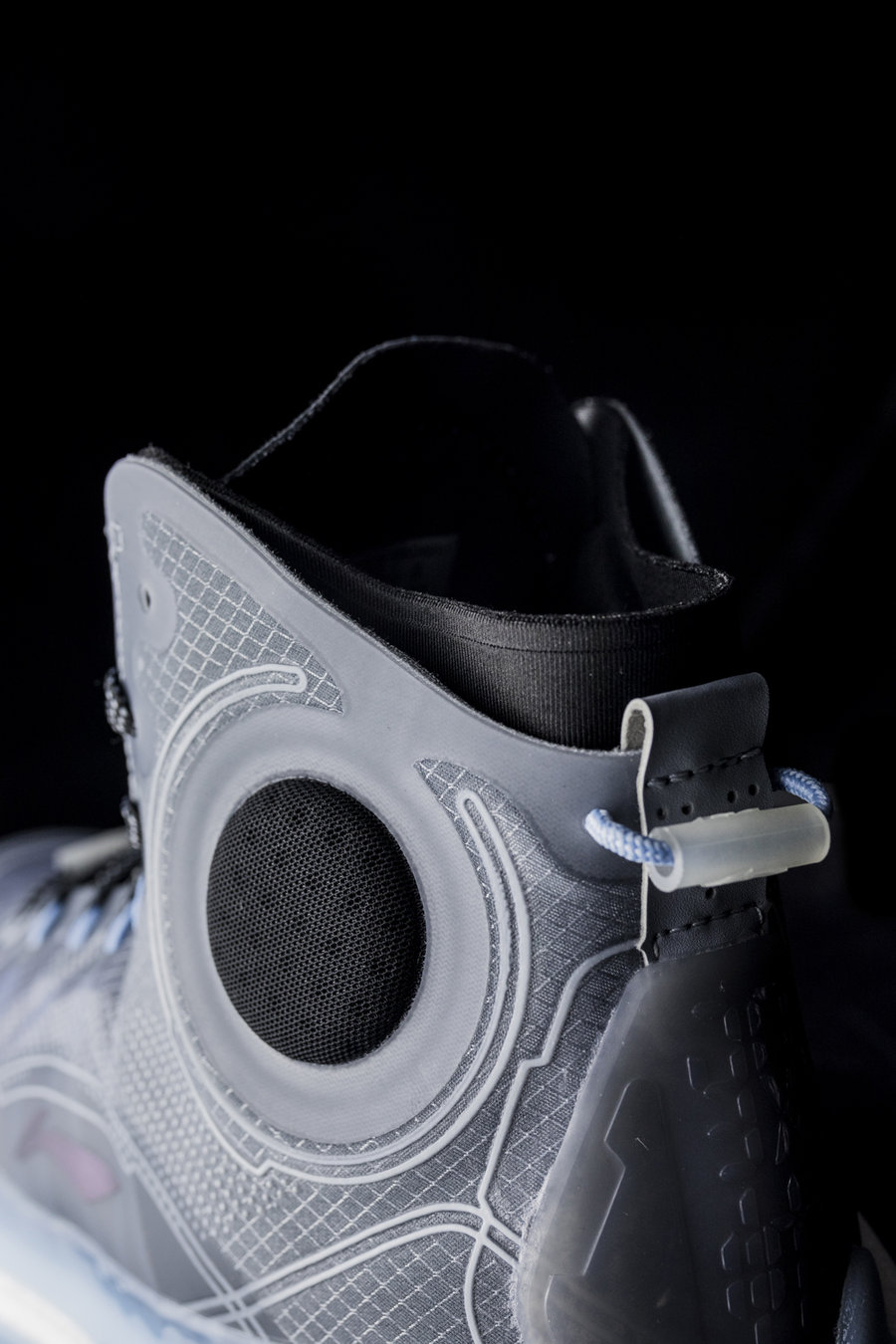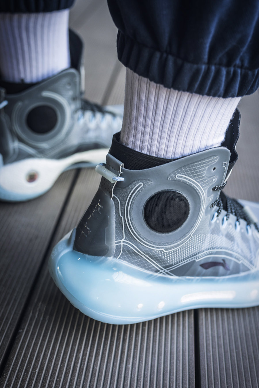 设计师孙明旭为了使鞋面比上一代更加细腻,大胆在篮球鞋上采用半透明纱线材质 Cool Shell。