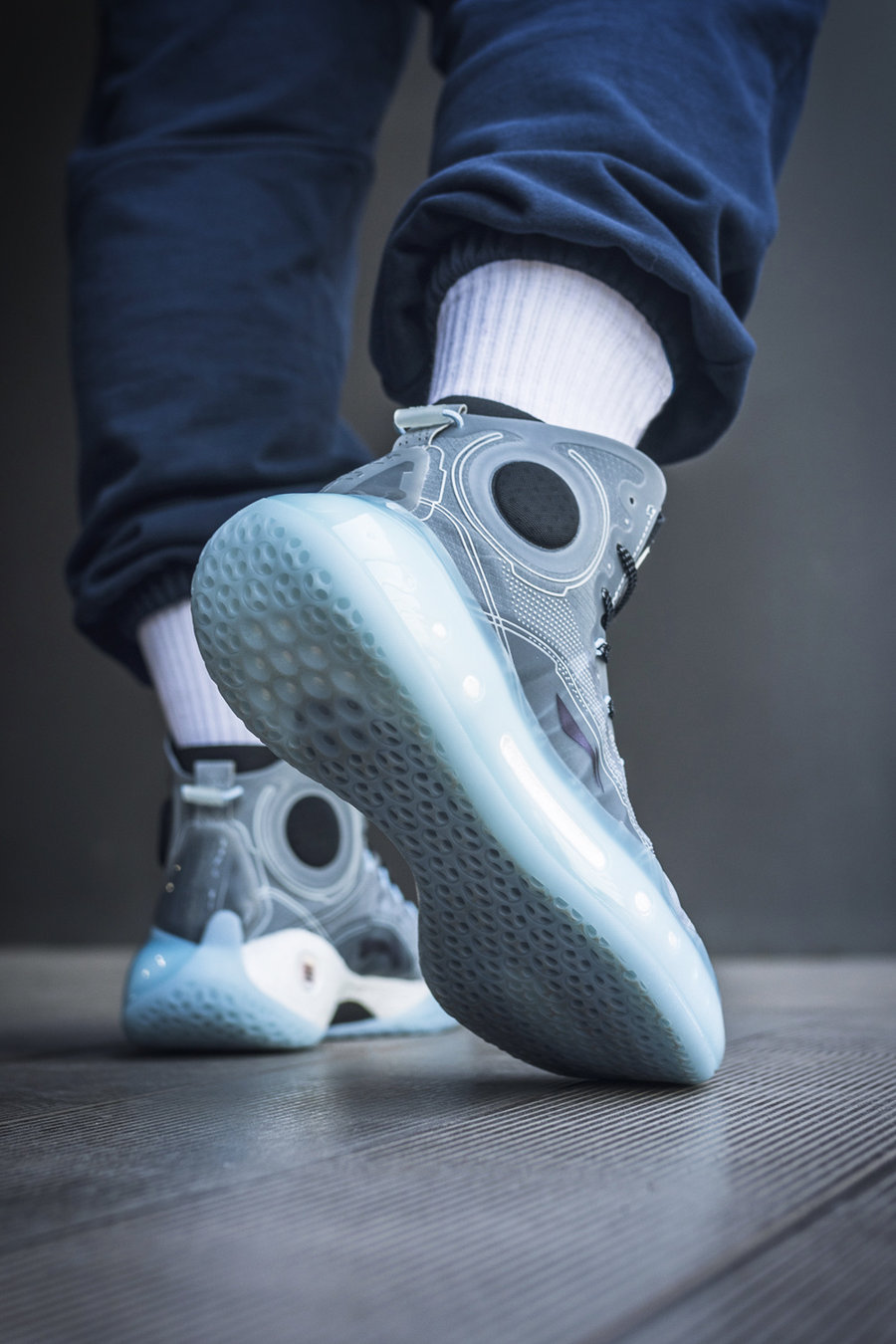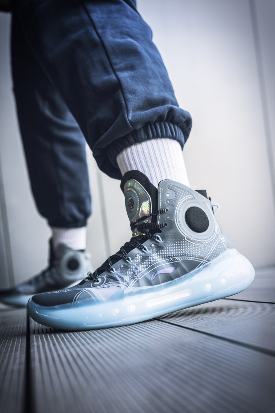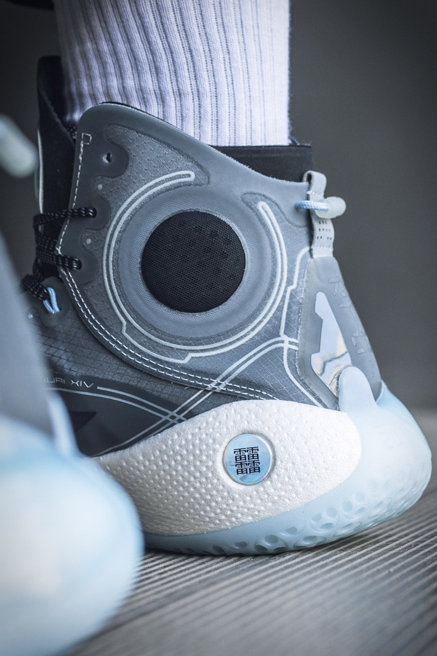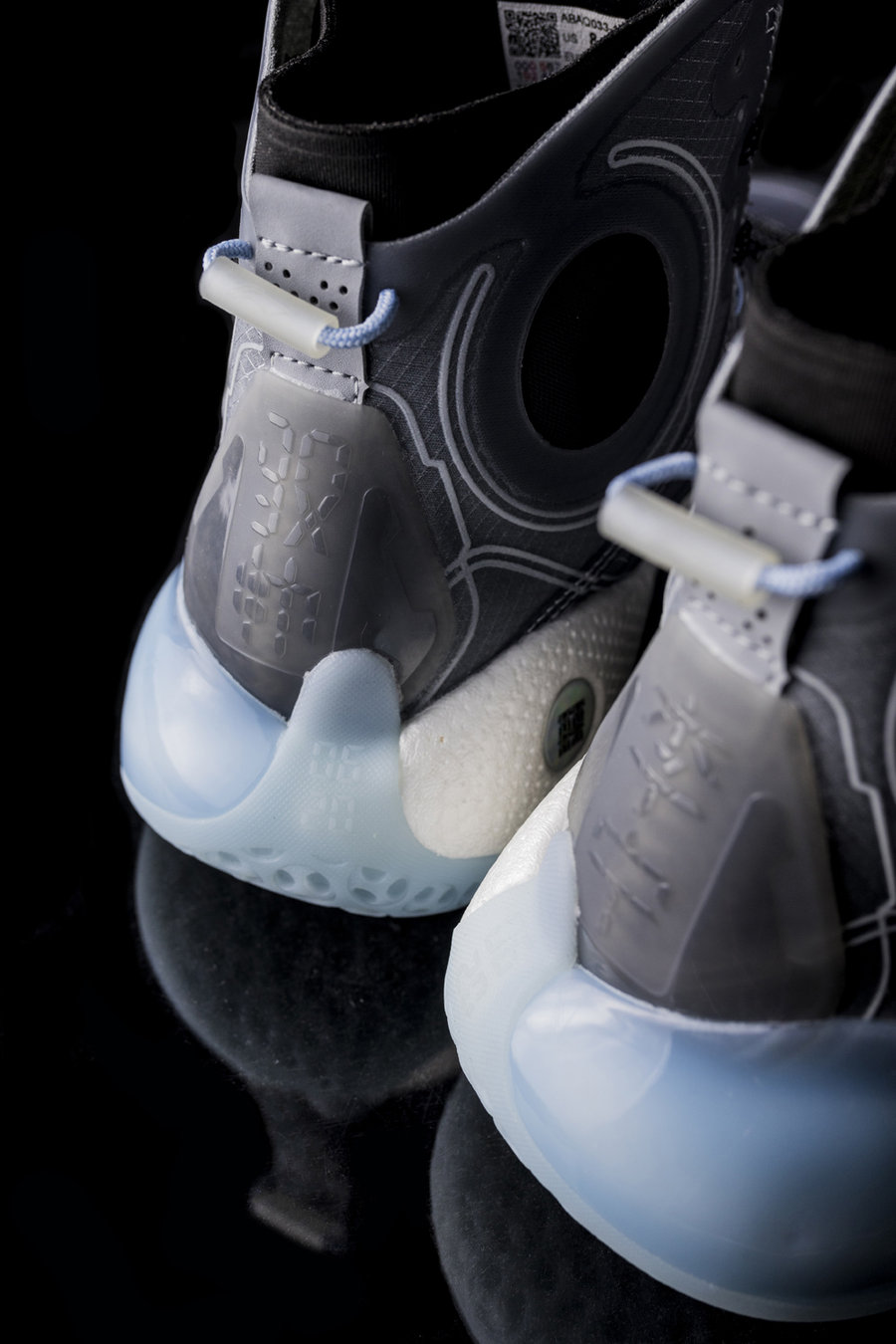 设计师孙明旭为了使鞋面比上一代更加细腻,大胆在篮球鞋上采用半透明纱线材质 Cool Shell。