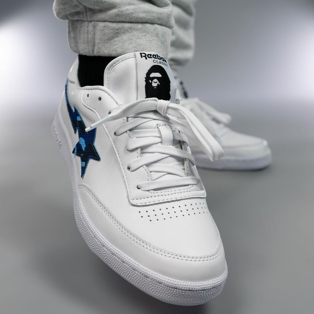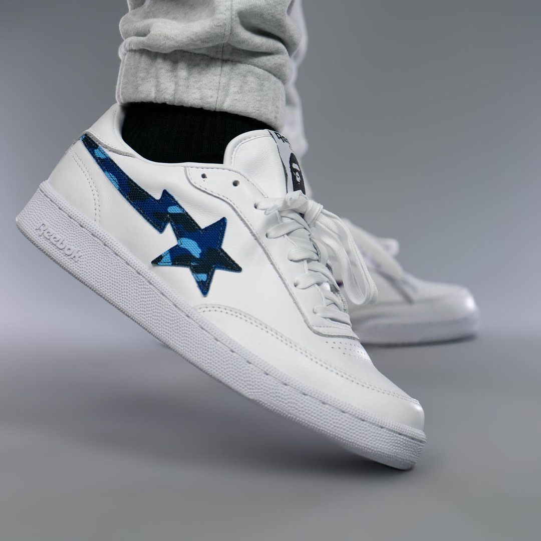 近日双方又带来了一次大胆合作,将 BAPE 自家的 BAPESTA 鞋型与 Reebok Club C 融合。