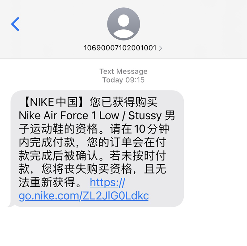 小编又是欧气满满的一天!今早 9 点 15 分收到了来自 Nike 的问候。