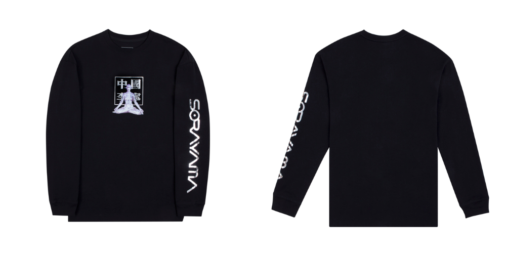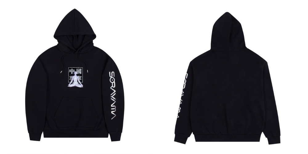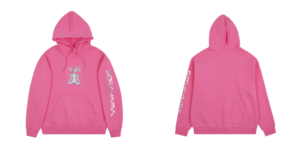 黑、粉两款配色,搭配全新设计的的冥想 Sexy Robot 图案,以及独特的金属质感银色印花工艺。
