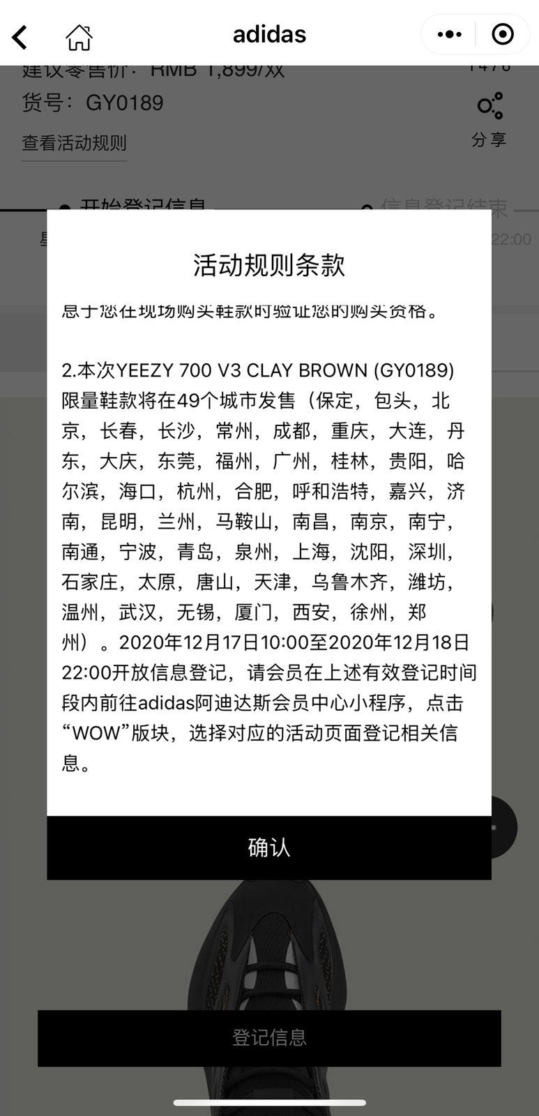 目前,微信小程序登记刚刚开启,打开「adidas会员」小程序,点击下方 WOW 板块,即可前往预约登记链接。