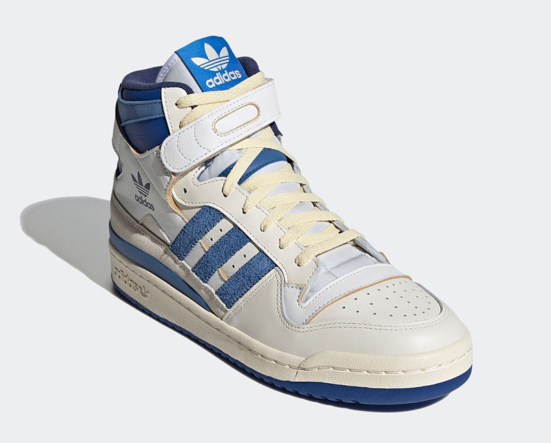 adidas 经典复古球鞋 Forum 84 Hi 迎来两款新品登场! 其中一款采用蓝染质感呈现,搭配高帮造型与脚踝绑带,营造鲜明的潮流气氛。 另一款则采用白、蓝相间示人,搭配淡黄色中底,释放出浓郁的复古气氛。 目前消息称两款新配色将于 12 月 22 日在全球范围陆续发售,定价 $120 美元。 adidas Forum 84 Hi 货号:FY7793(白蓝)/ FY7794(蓝染) 发售日期:12 月 22 日 发售价格:$120 美元