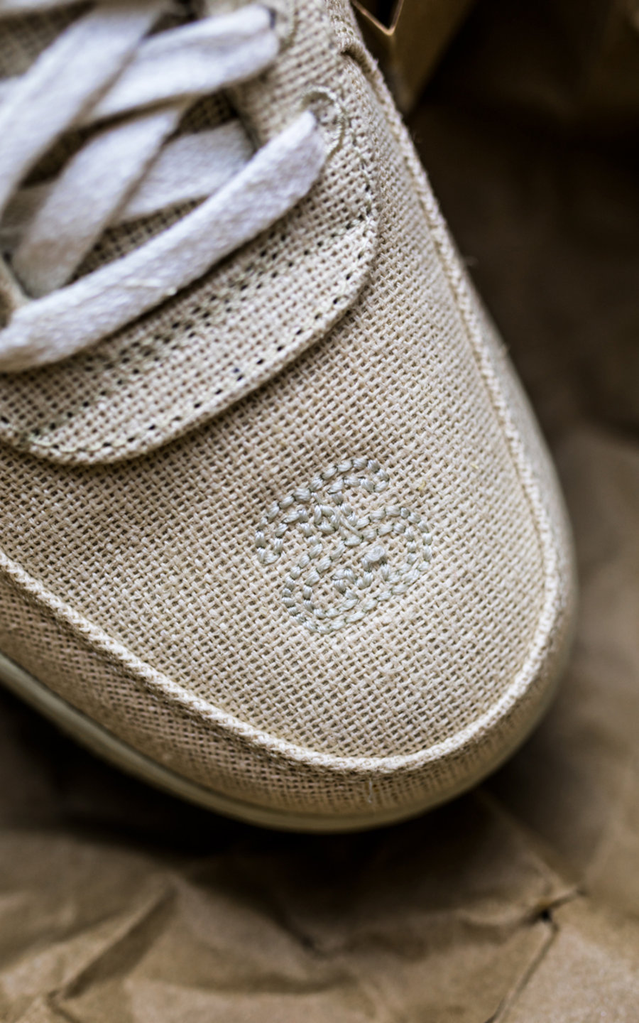 卡其色的鞋面由质感粗犷的麻质打造,与上一款「富婆快乐鞋」非常相似,丝毫不用担心穿多了鞋头会出现褶皱。