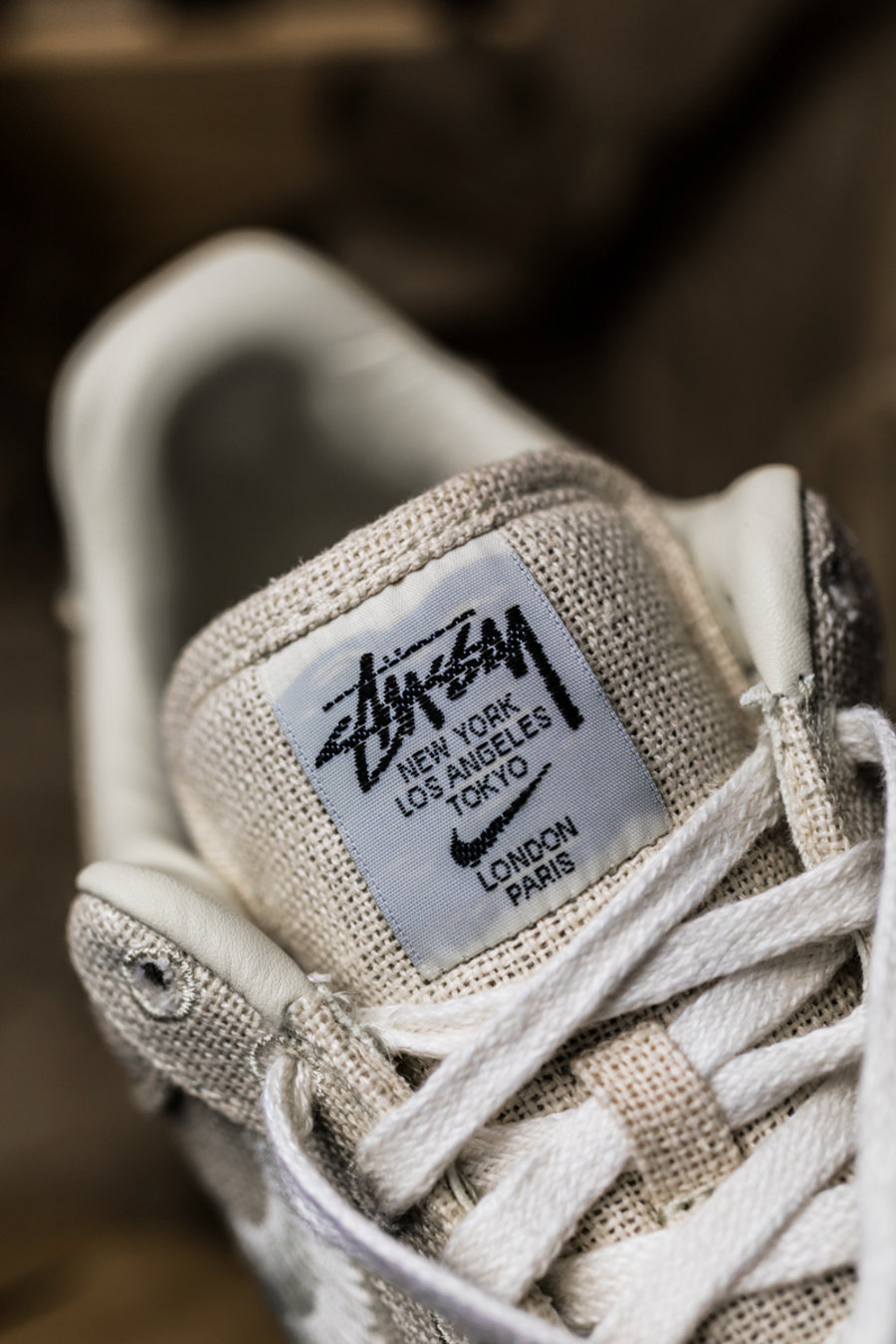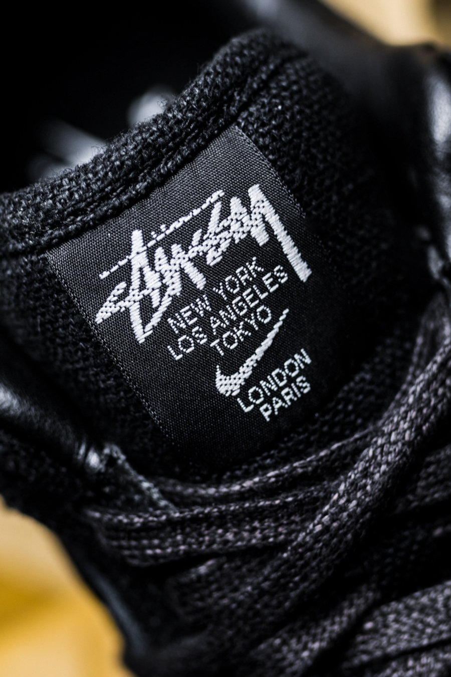 鞋舌处除了饰有 Stussy 字样,还缀有 New York、Los Angeles、Tokyo、London、Paris 城市巡游字样。