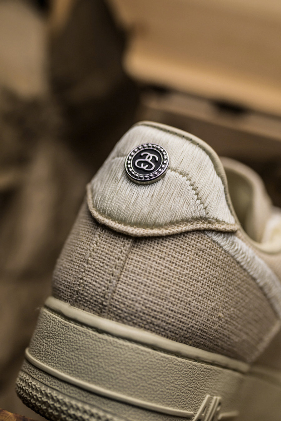 后跟部分与 Swoosh Logo 选择了相同的材质,并在后跟点缀金属 Stussy Logo,视觉效果十分吸睛。