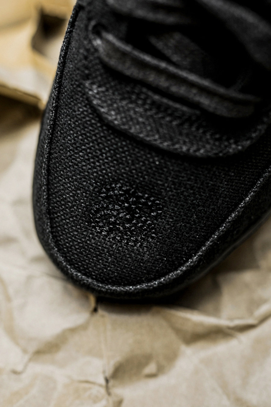 另一双以纯黑造型装扮,采用粗制网布打造鞋身,不仅低调百搭,也在细节上展现出复古气质,同时相较卡其色会低调不少。