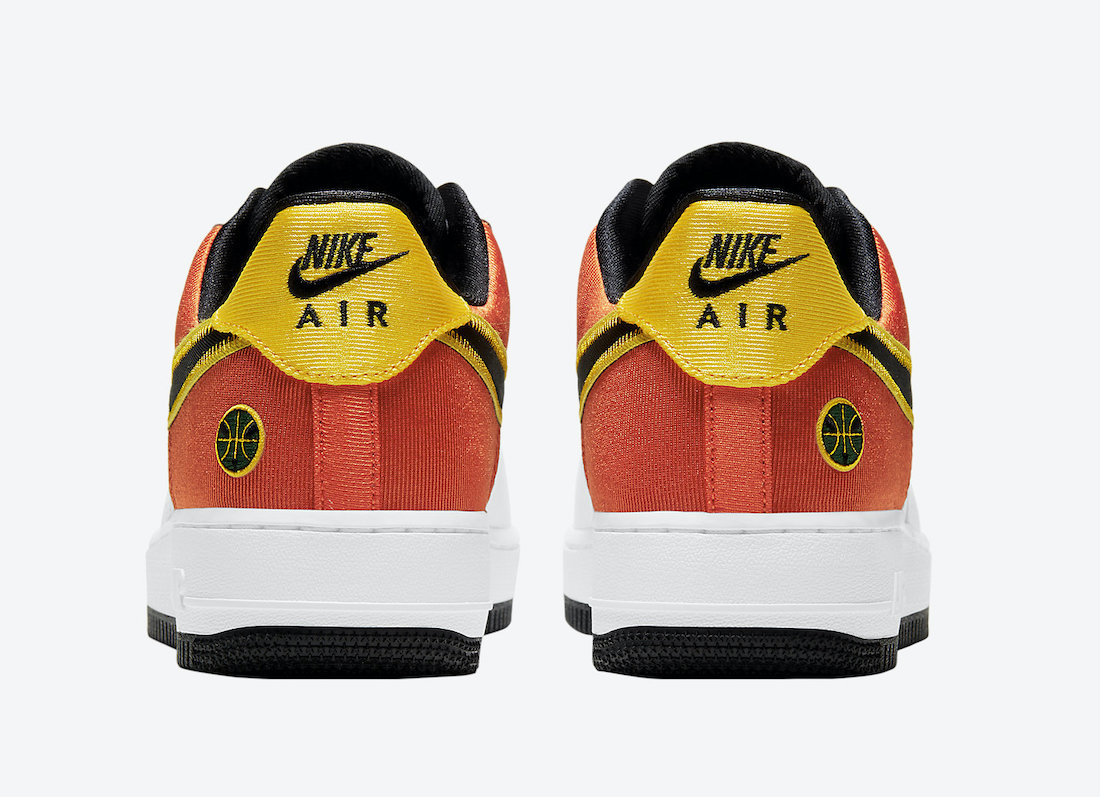 球鞋后方及鞋舌标签用橙色点缀,后跟采用了亮黄色设计,黑色 Swoosh 也用亮黄色做了勾边处理
