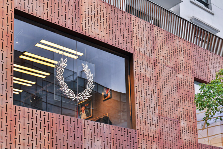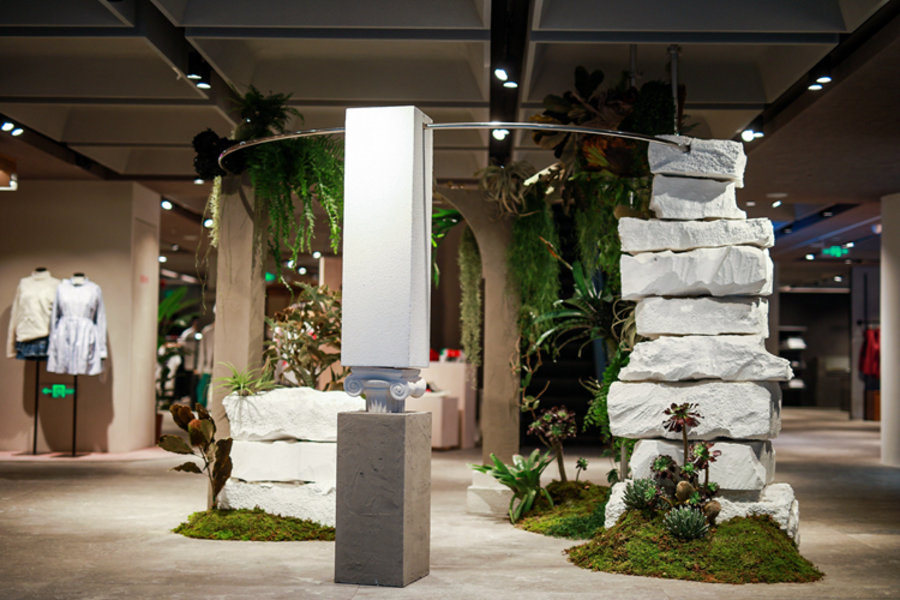 在 1866 平方米上下两层的空间里,简洁工业质感装潢,通过自然采光与店内挑高的点光源,融合自然形态的砖石与木质展柜,营造时尚且多元的舒适体验。