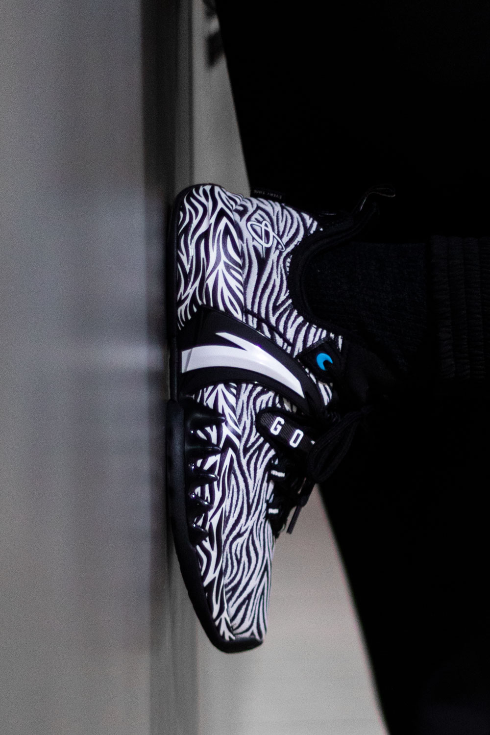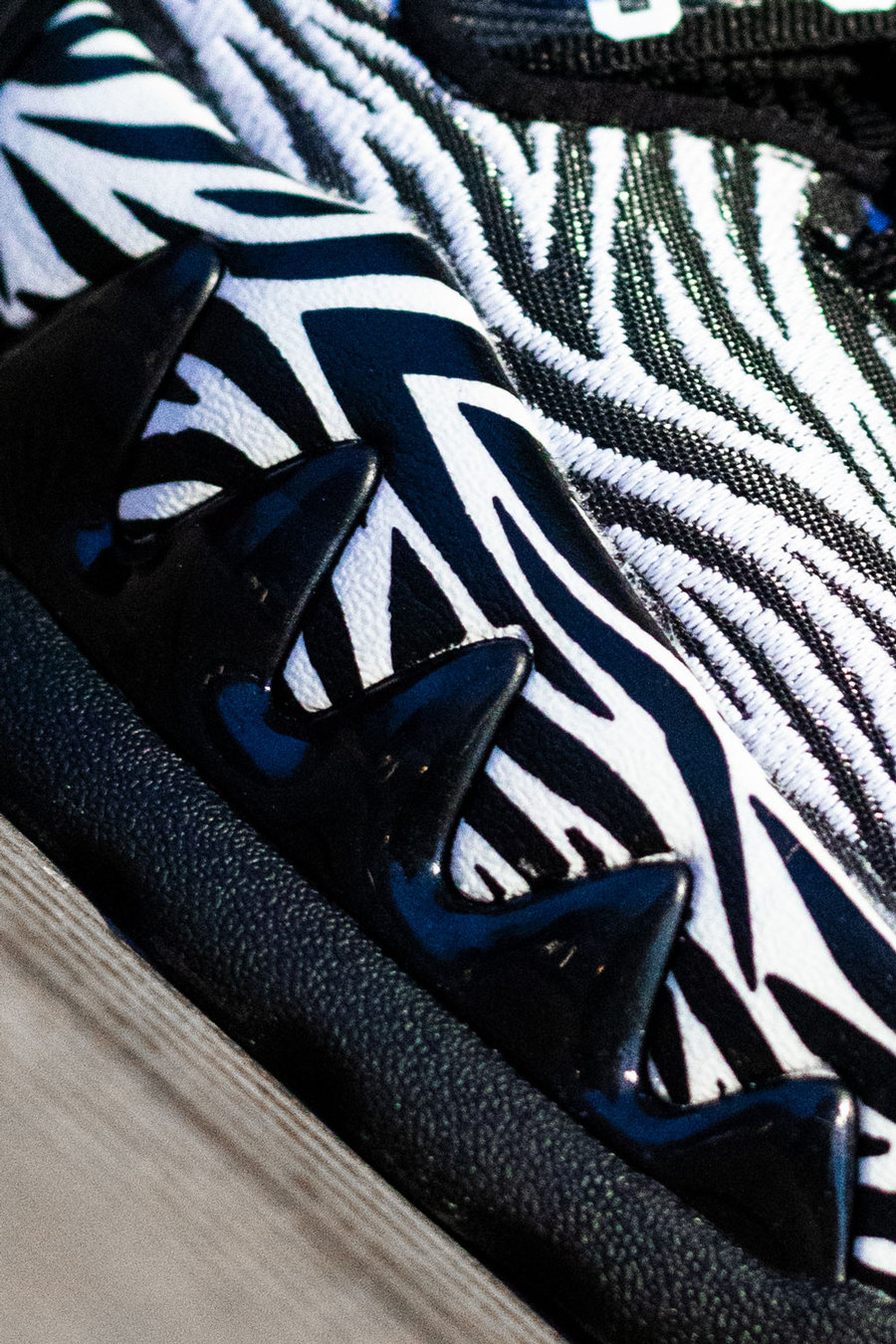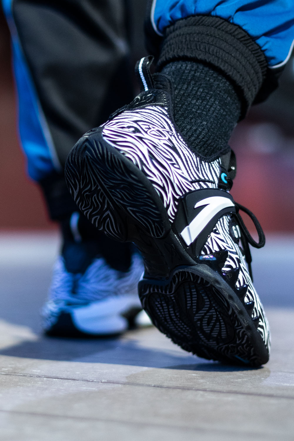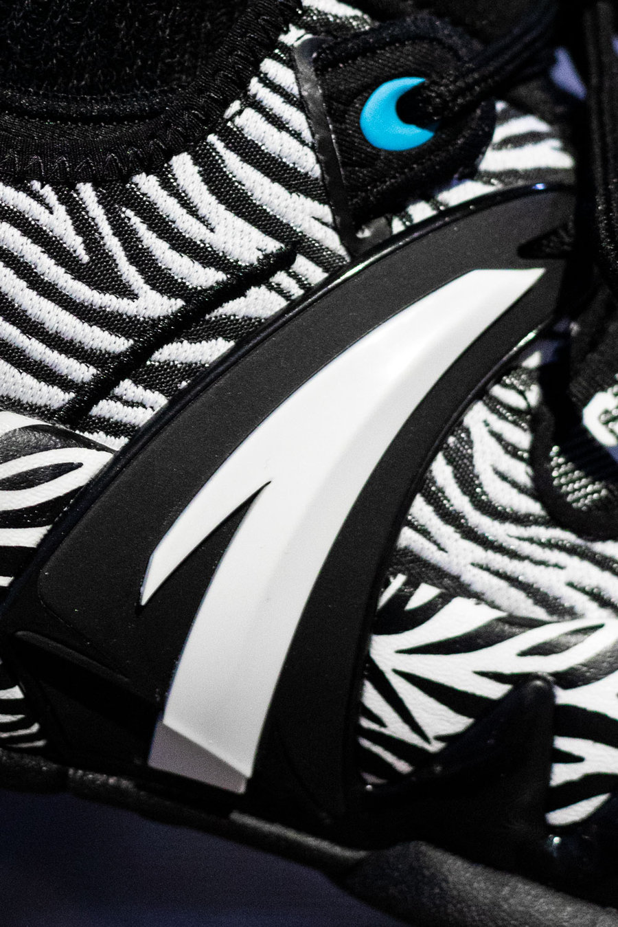 大面积黑白相间的虎纹覆盖鞋身,视觉效果极其抢眼。