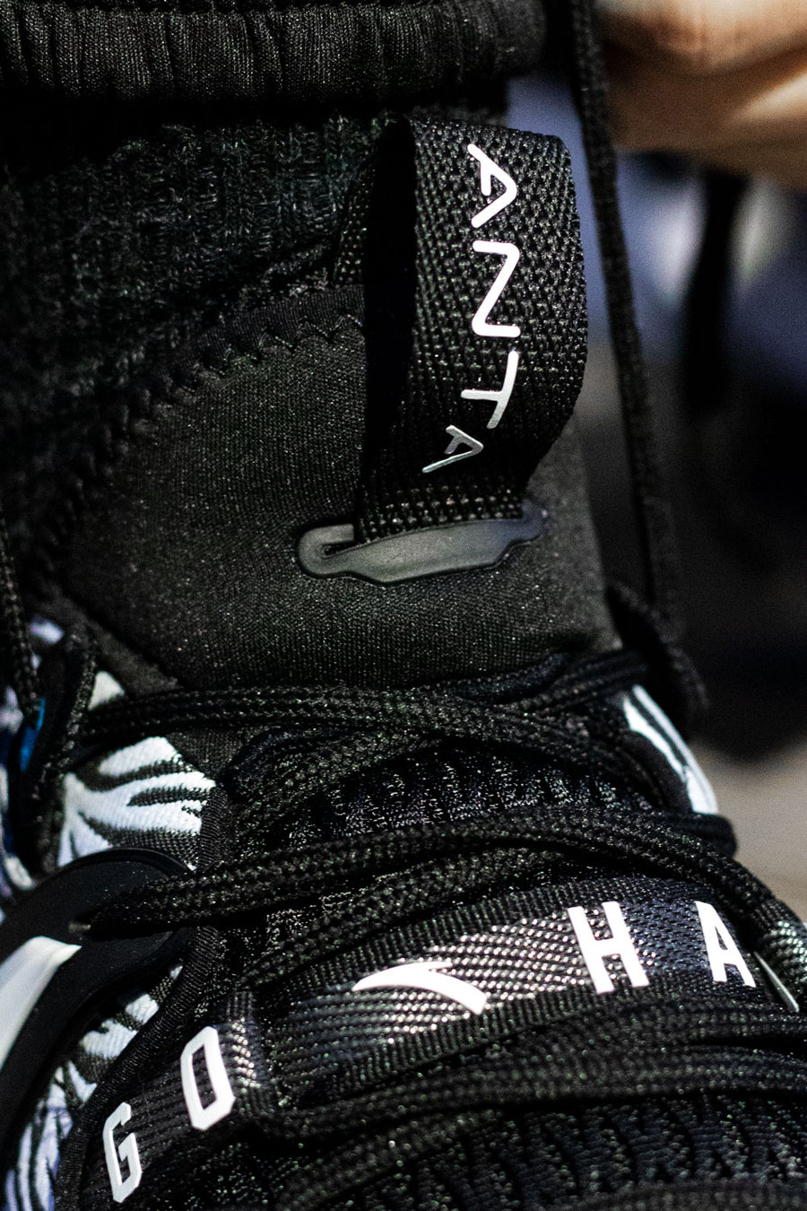 从上至下的安踏 Logo 贯穿鞋身,不仅与鞋面毫无违和,更是增添一丝速度感。