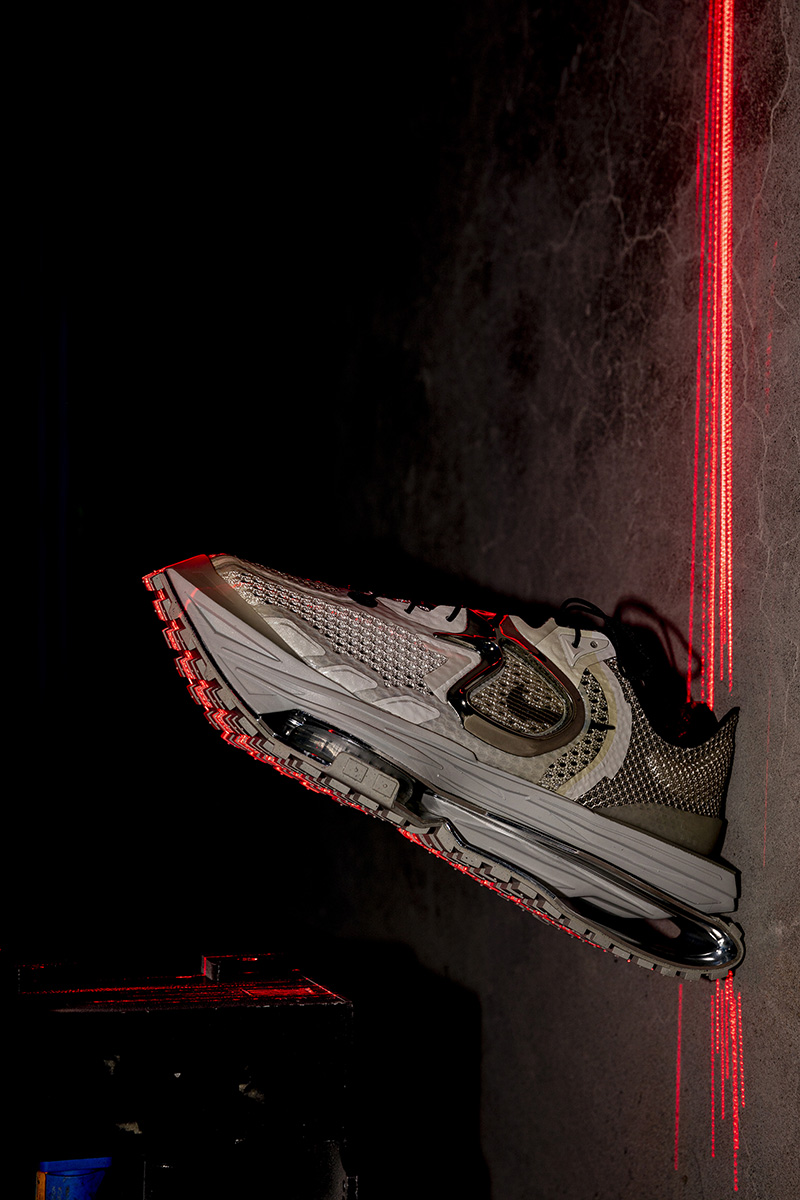 换上银色装扮,造型更加科幻。延续了夸张镂空鞋底,取消了分趾设计并减少气垫,令发售价下降不少。