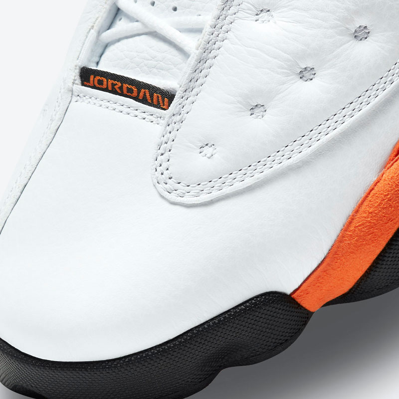 虽然官方将这双全新的 Air Jordan 13 命名为 Starfish 海星,但橙色的加入让人不禁想到扣碎配色。