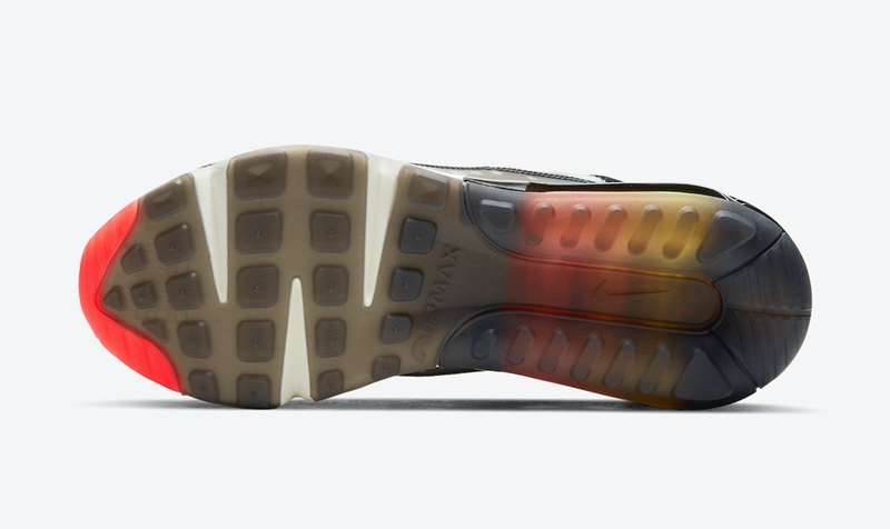 为致敬 Air Max 90,中底框架设计延续经典开窗式气垫,并以彩虹样式呈现,兼具颜值与舒适脚感。