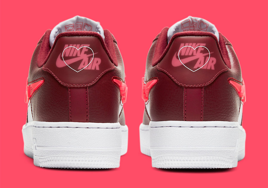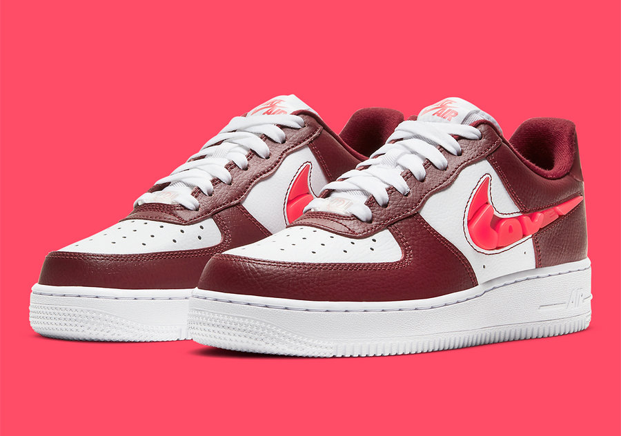 近日,又一款爱心主题的新配色 Air Force 1 亮相,很可能是第二款情人节配色。