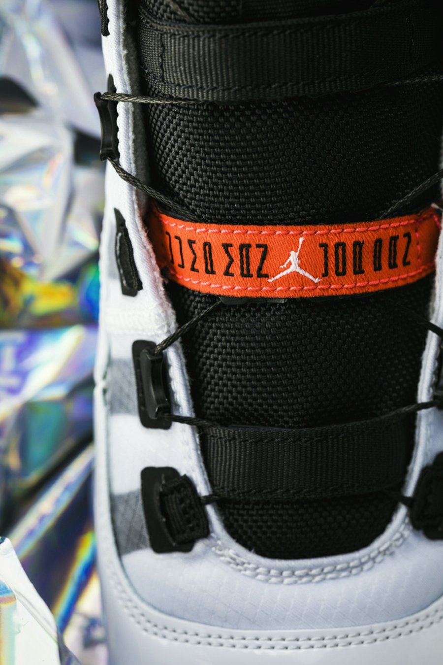 整双鞋在鞋面保留经典漆皮的同时,将原本的尼龙部分改为了半透明蝉翼材质,呼应整双鞋科技和未来的气质和主题。