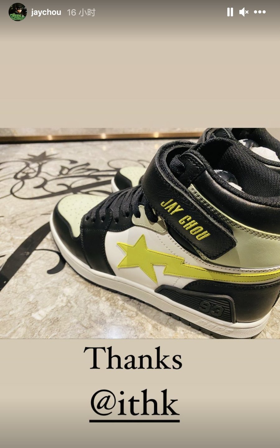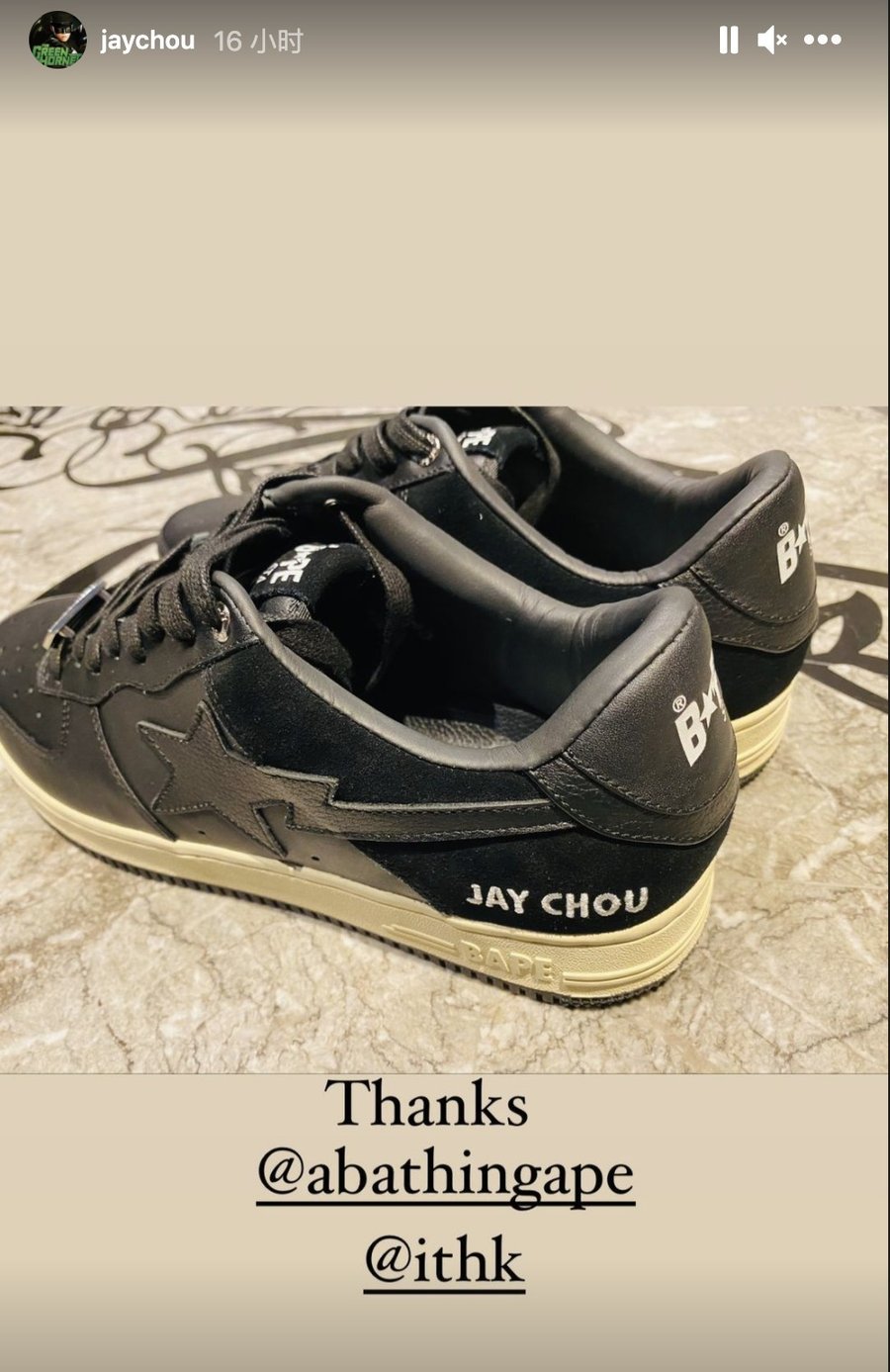 最让人想不到的还是周董晒出了两双 Bape 专为他打造的个人专属鞋款,小编看完直呼排面!