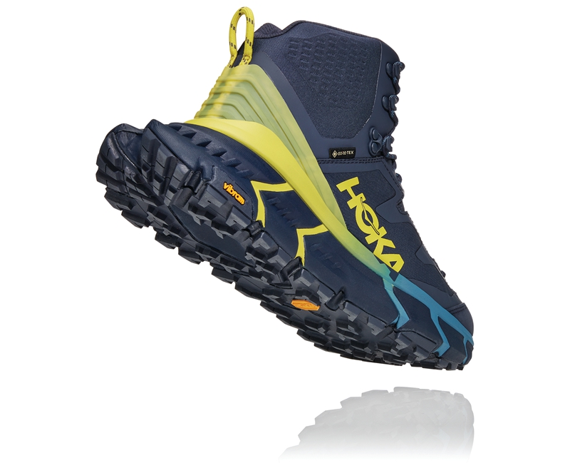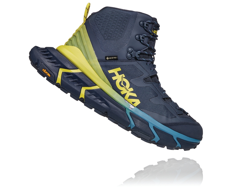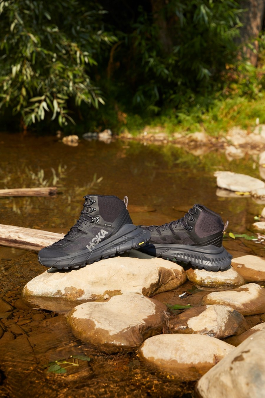 此次登场的两双全新 TenNine Hike GTX 分别以黑色和海军蓝色为主调,并将 HOKA ONE ONE 特有的 Hubble 厚底造型进一步释放,造型十分夸张。