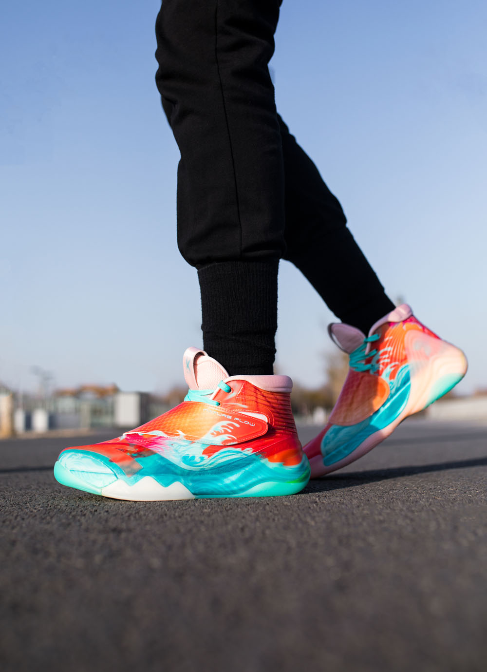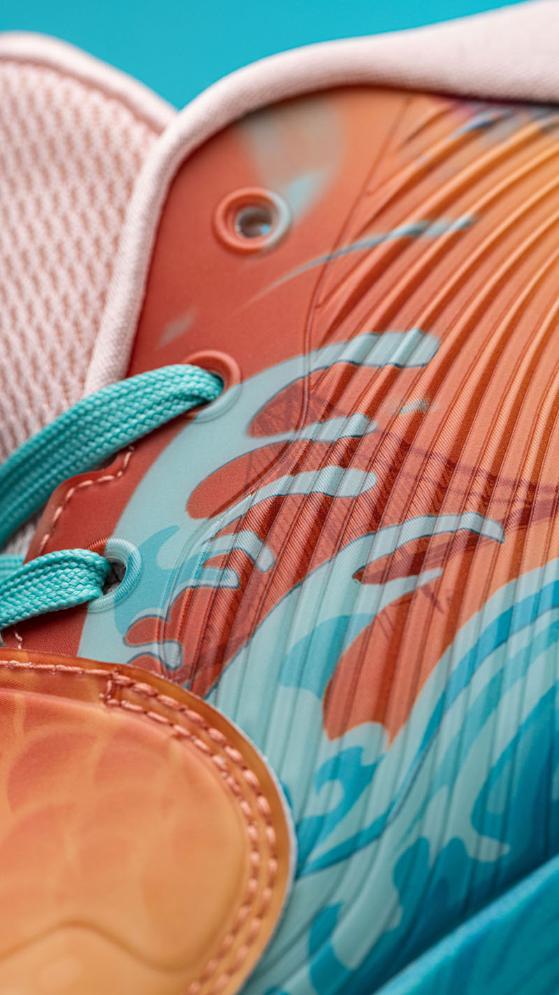 整个鞋面满印有鲤跃龙门图,橙色和水蓝色组合吸睛效果不言而喻。