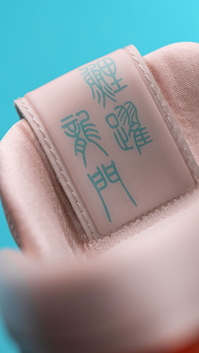 左右脚的鞋舌内侧暗藏玄机,分别写有 “鲤跃龙门” 和 “锦绣前程”。
