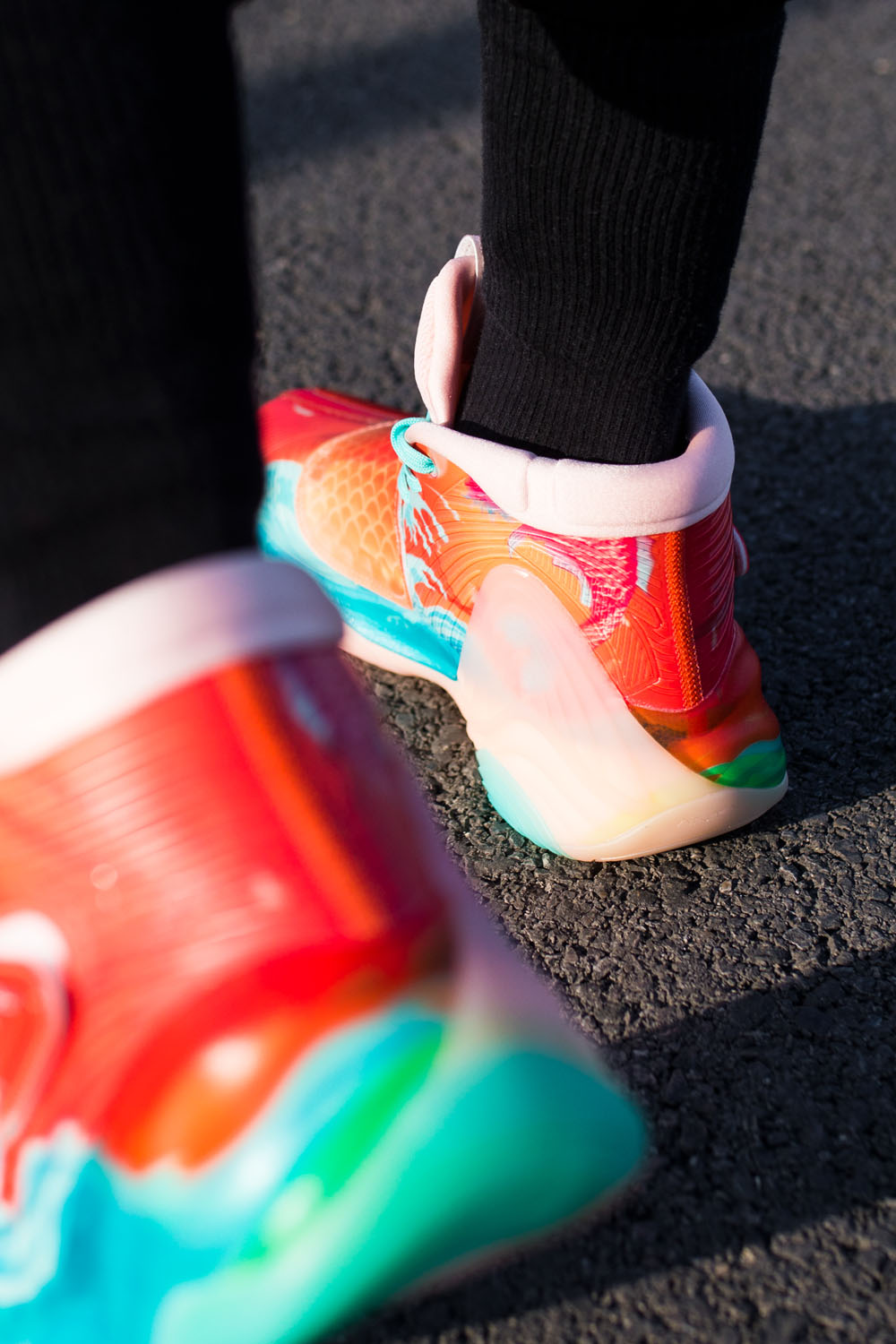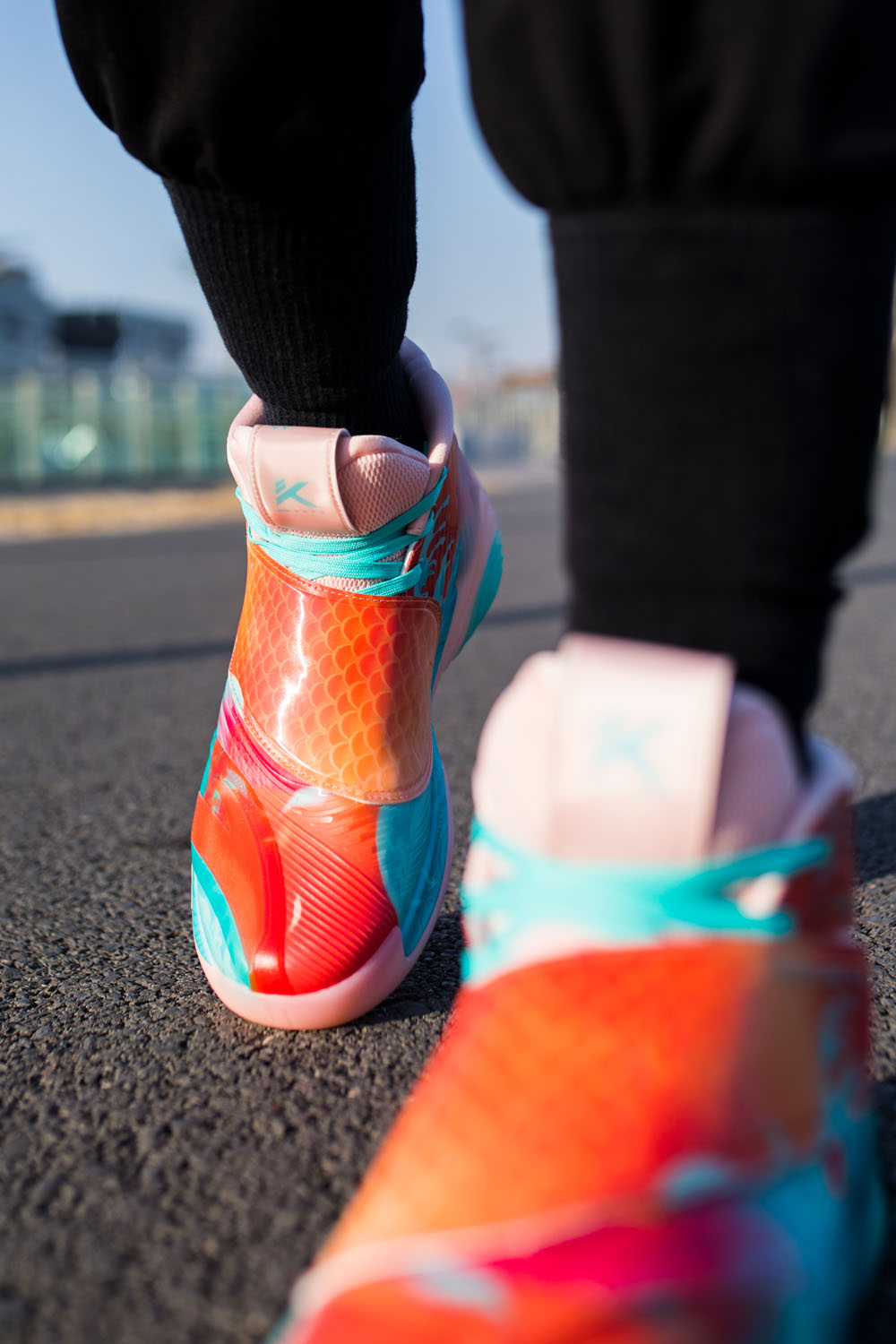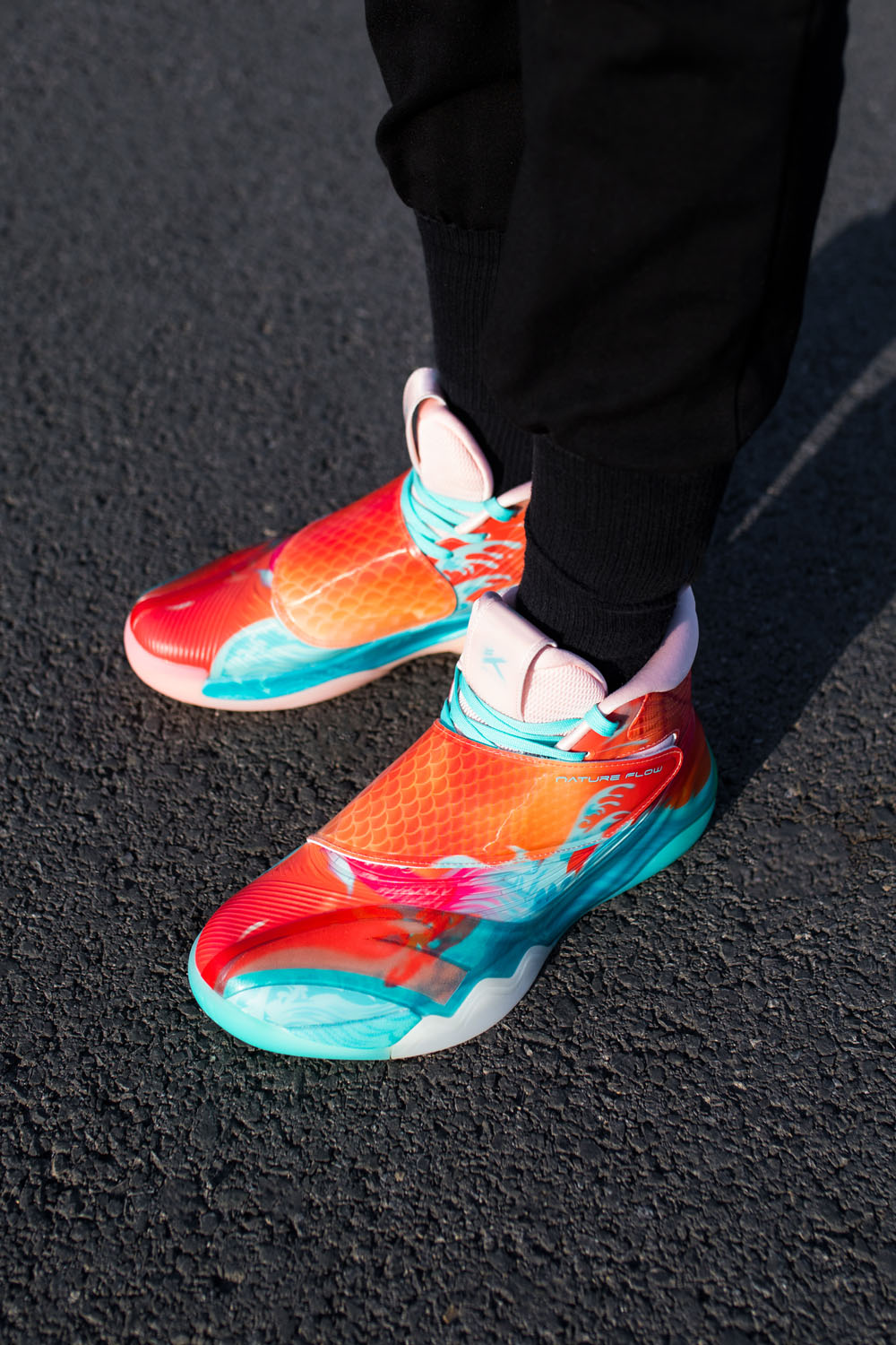 为了给大家完整展示,小编忍痛上脚这双 KT6 锦鲤,说实话心里有点不舍得。