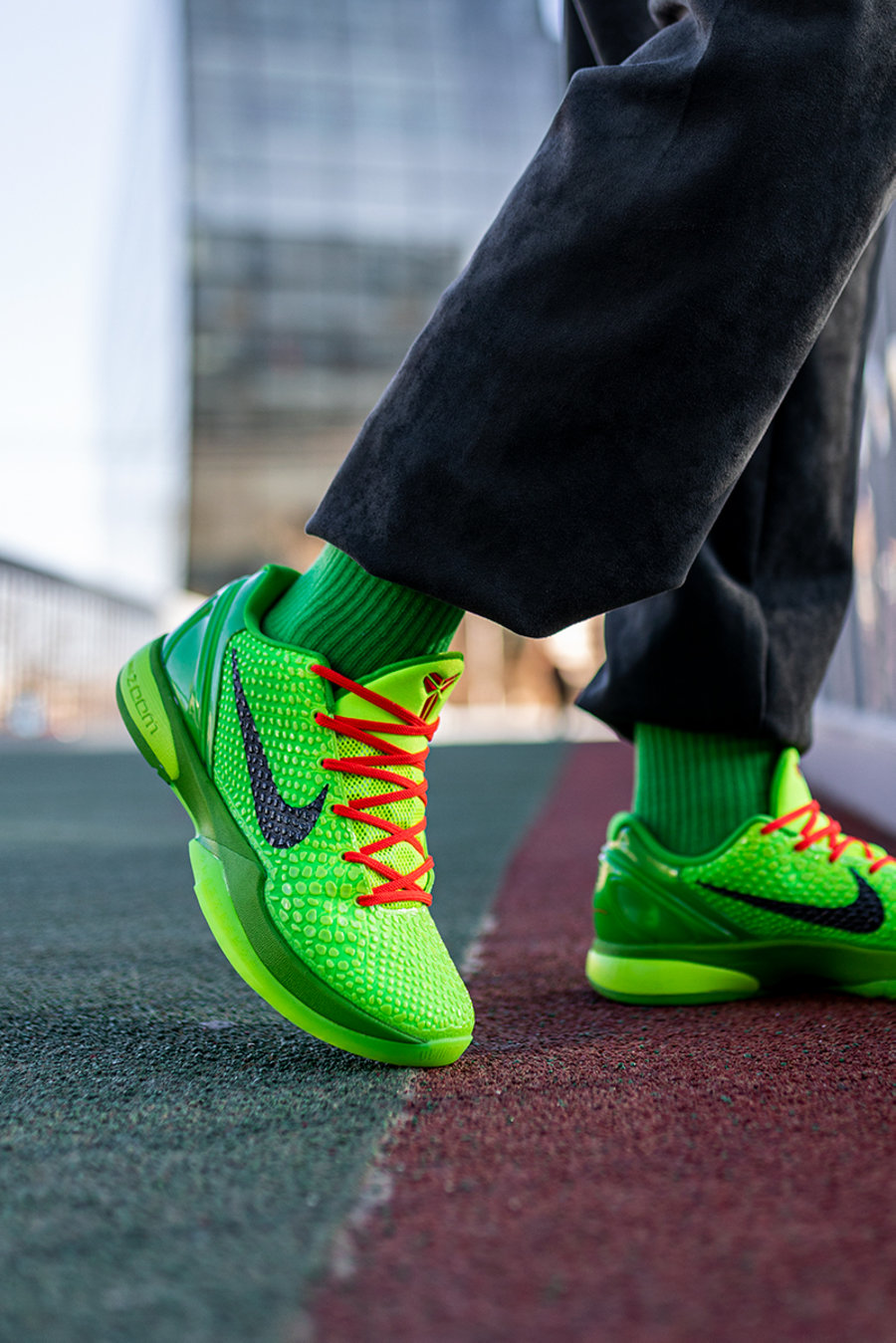 虽然那场比赛以湖人队失利而告终,但是科比上脚的 Nike Zoom Kobe 6 “Grinch” 却成为无数人心中的经典。