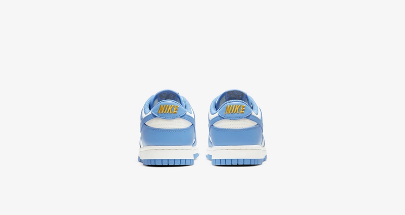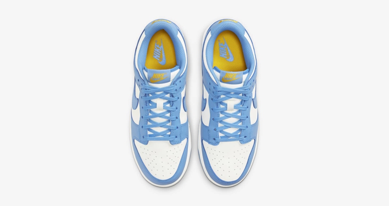 第二双款则是一双 Dunk Low 鞋型,整体配色采用白为底,北卡蓝覆盖整个鞋身轮廓与鞋底和内衬, 呈现出 Nike 经典的北卡蓝造型。