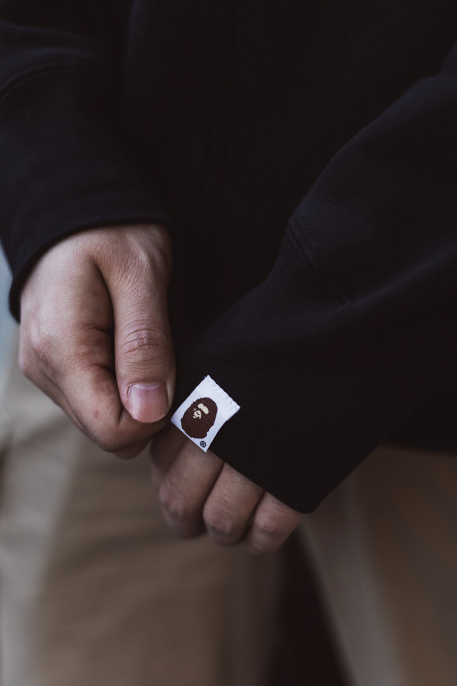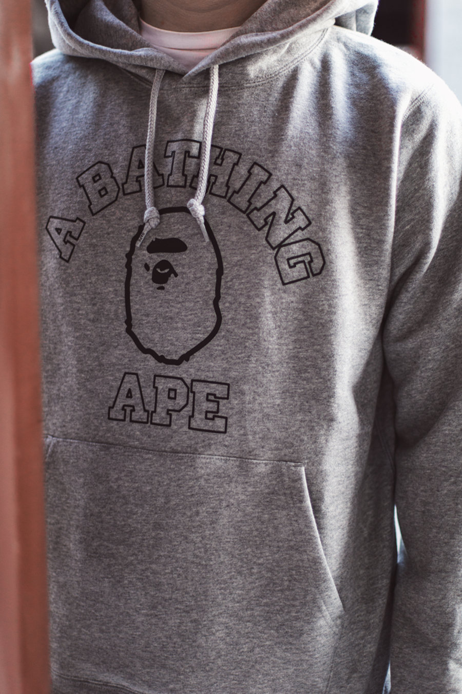 色调素雅不挑人,胸前黑色勾勒的猿人头与环绕的 A BATHING APE 环状字体,既醒目又不张扬。
